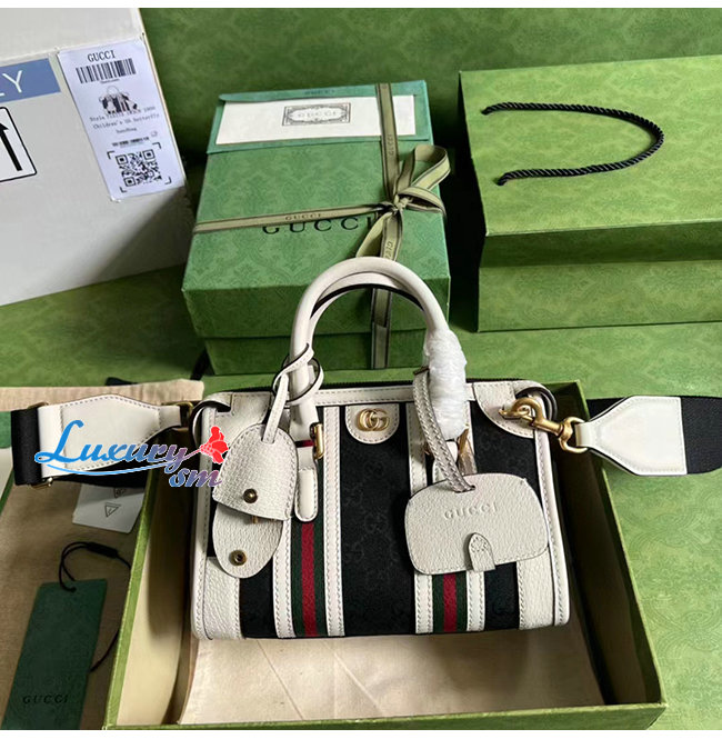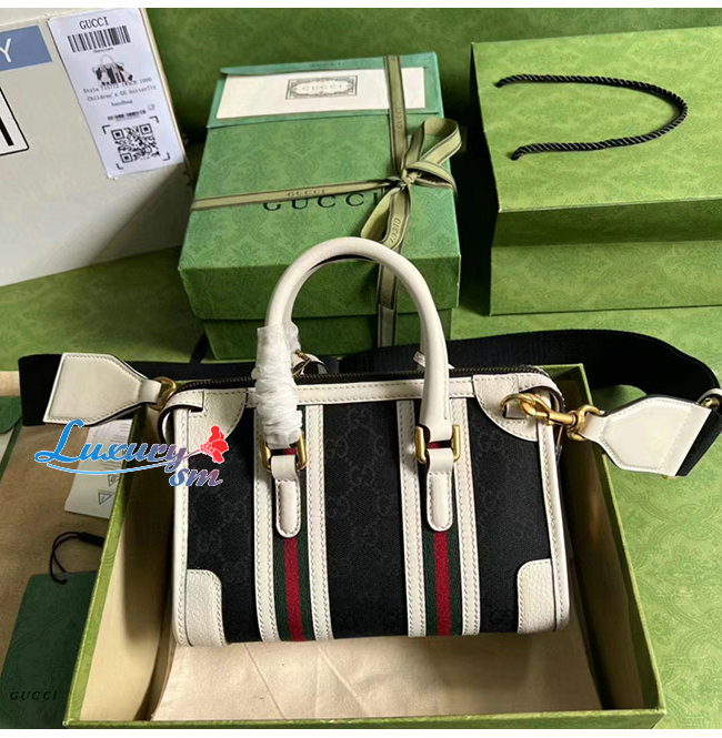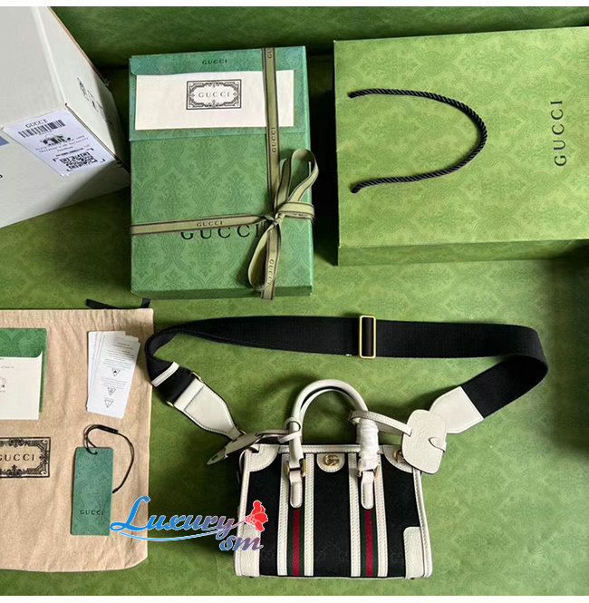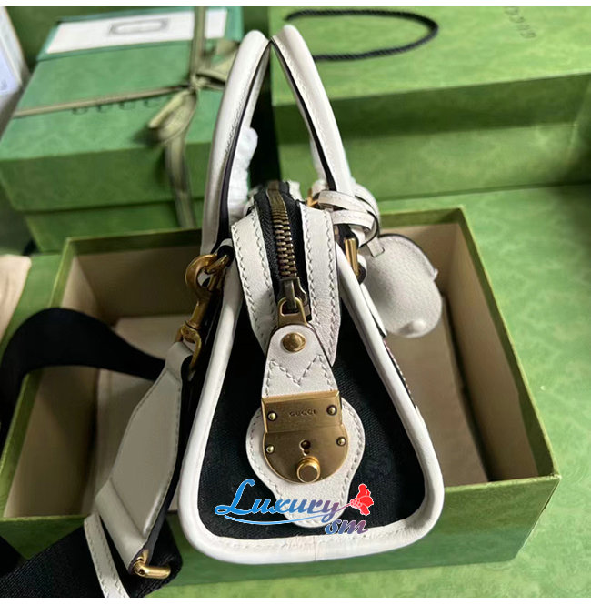 [스페셜오더]GUCCI-715771 1044 구찌 화이트/블랙 미니 캔버스 탑 핸들백