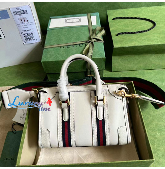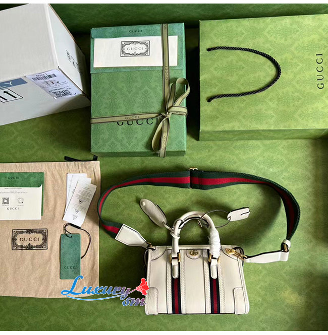 [스페셜오더]GUCCI-715771 9041 구찌 화이트 가죽 미니 캔버스 탑 핸들백