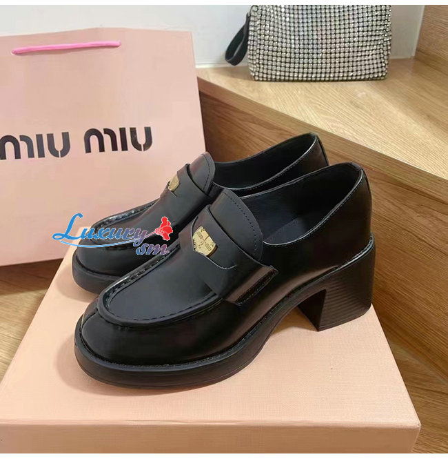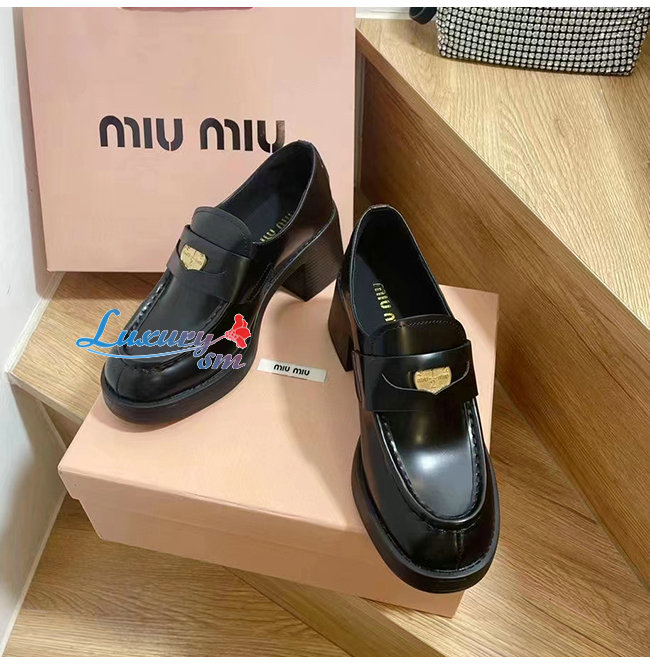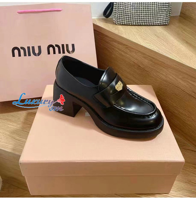 MIUMIU-5D820D 미우미우 블랙 가죽 페니 로퍼
