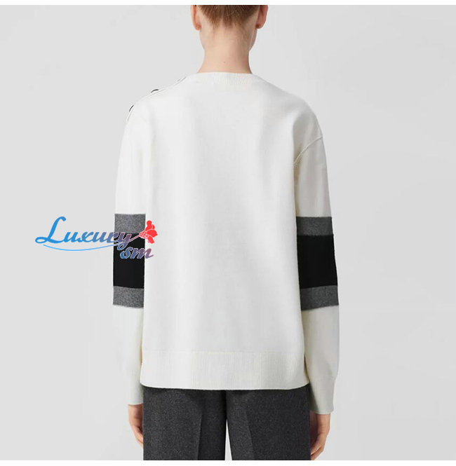 BURBERRY-80583971 버버리 화이트 로고 그래픽 아플리케 울 캐시미어 스웨터