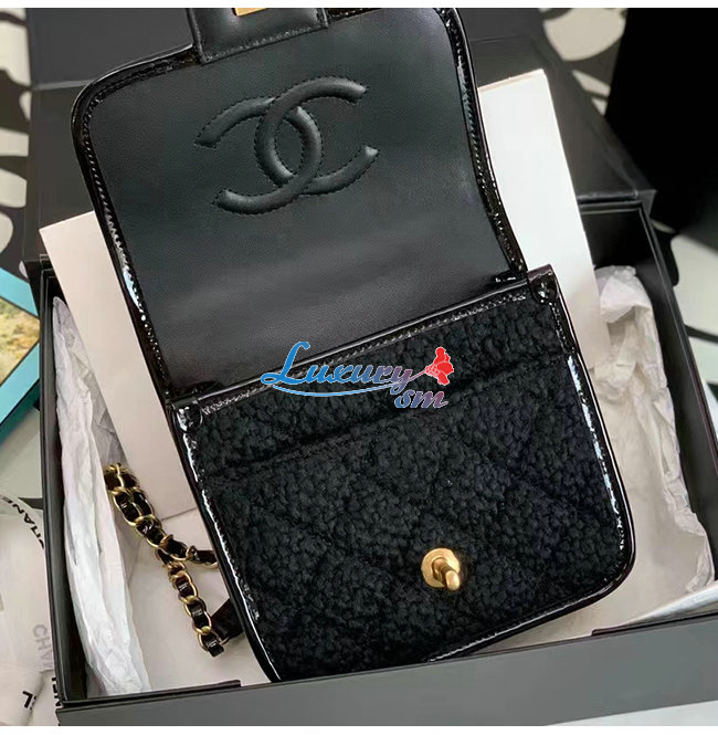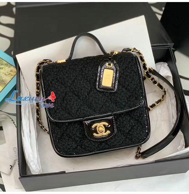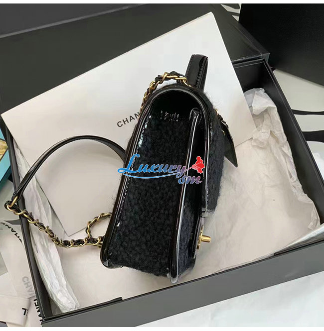 [스페셜오더]CHANEL-AS3652 샤넬 블랙 페이턴트 카프스킨 핸들 장식 스몰 플랩 백