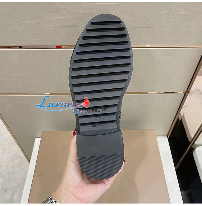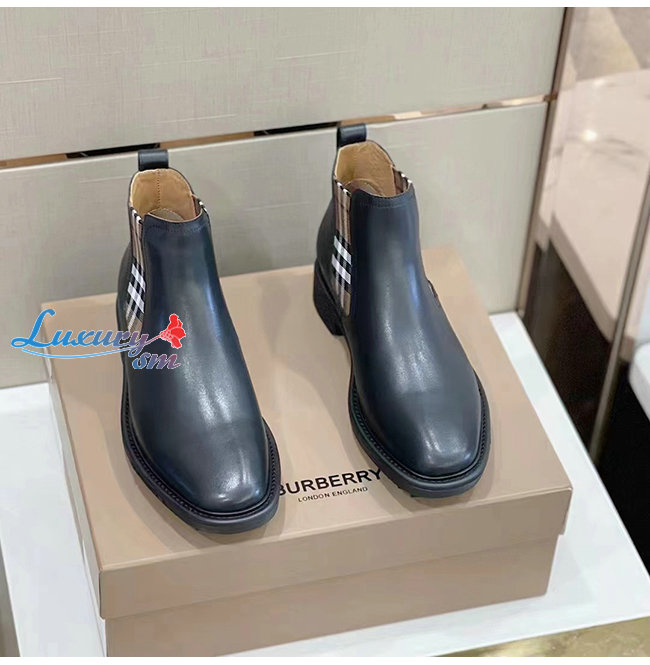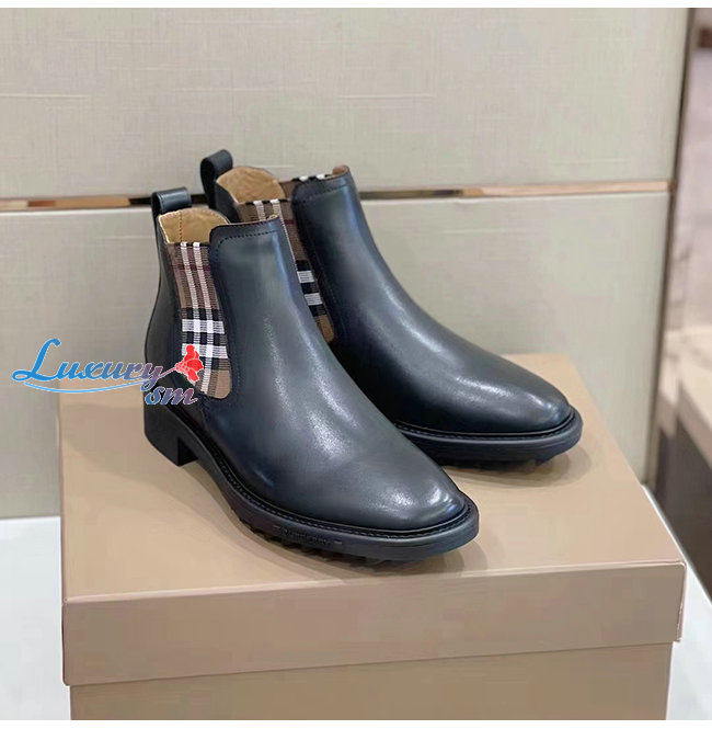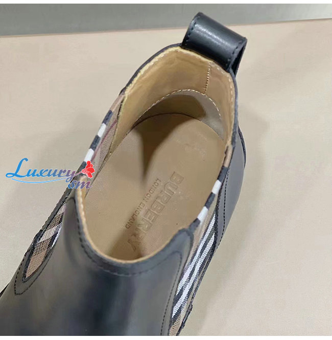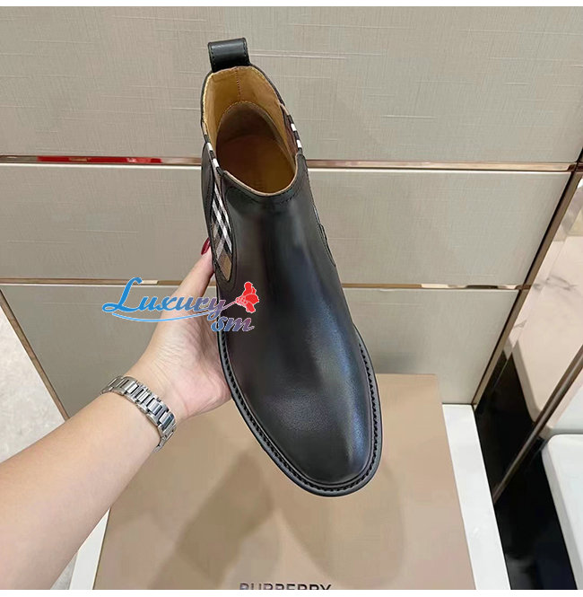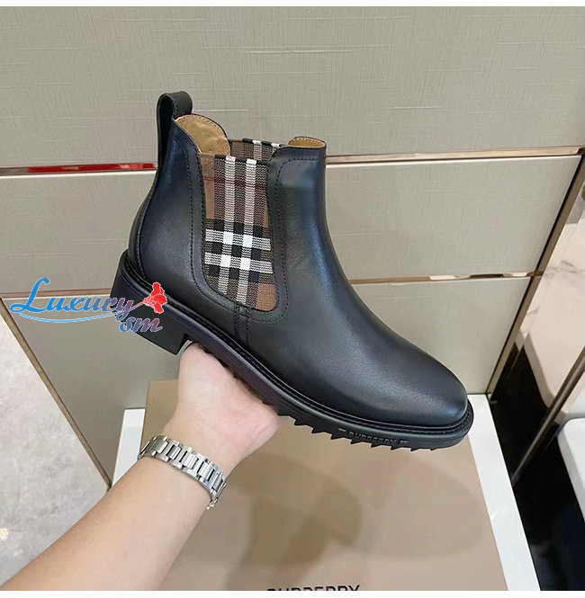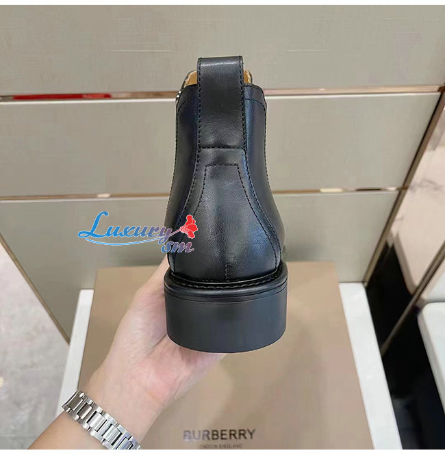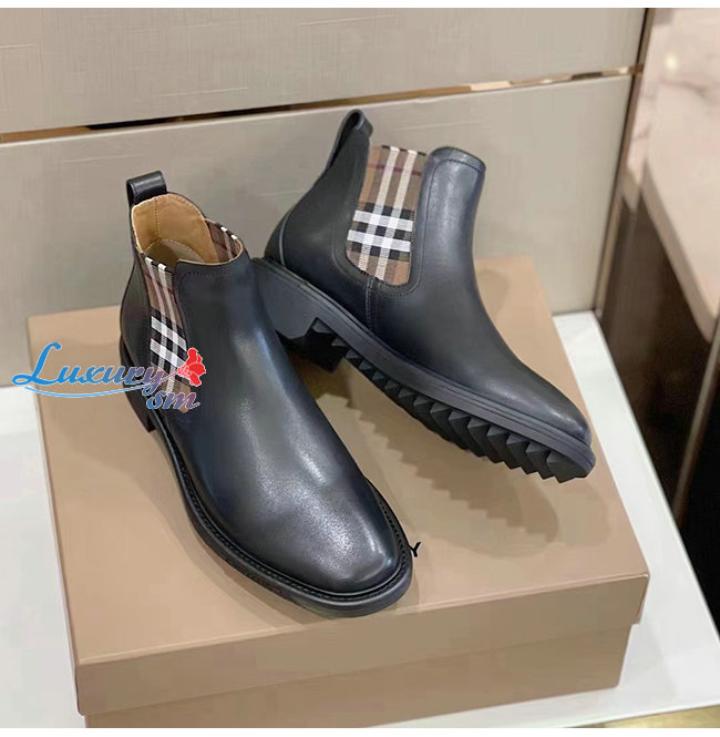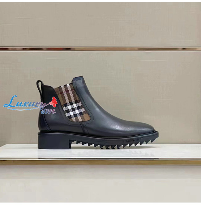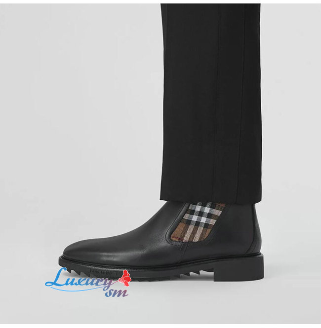 BURBERRY-80452441 버버리 블랙 빈티지 체크 디테일 레더 첼시 부츠