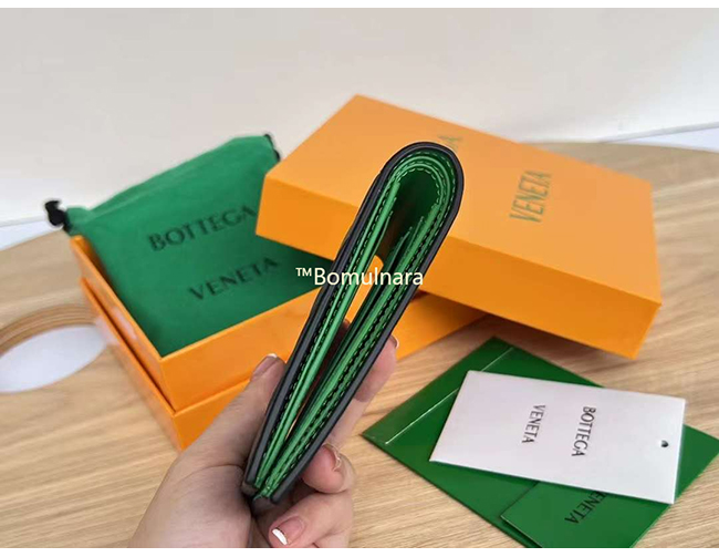 [스페셜오더]BOTTEGA VENETA-605721 보테가 베네타 블랙/그래스 인트레치아토 위빙 폴더형 반 지갑