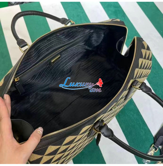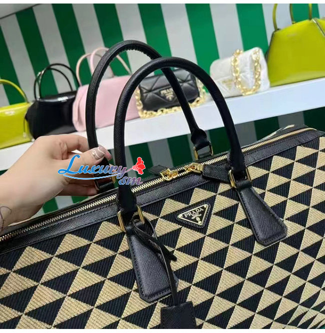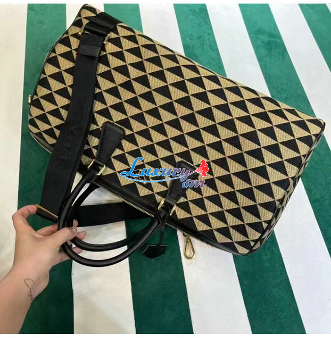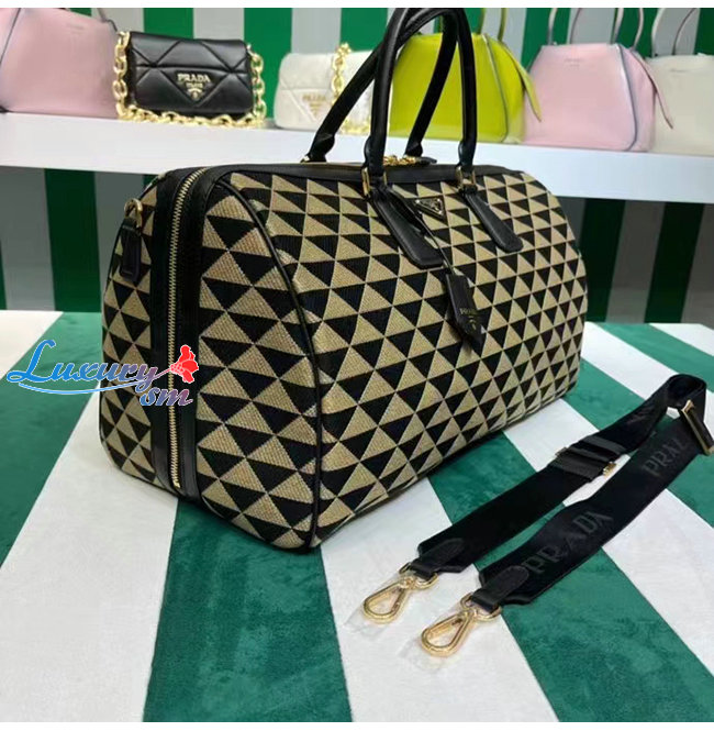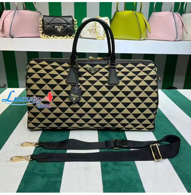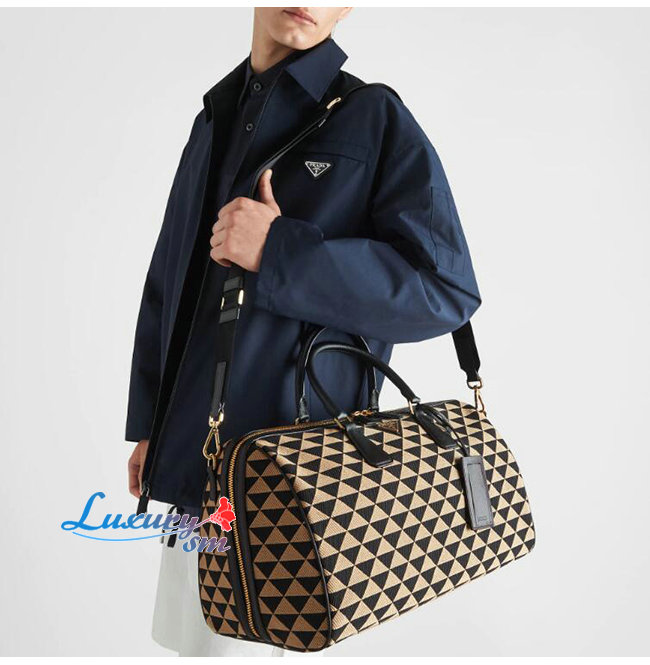 [스페셜오더]PRADA-2VC018 프라다 베이지 심볼 자수 패브릭 트래블 백