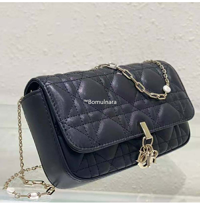 [스페셜오더]CHRISTIAN DIOR-S0977B 디올 블랙 까나쥬 양가죽 LADY DIOR 휴대폰 파우치