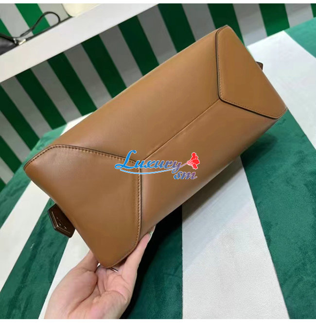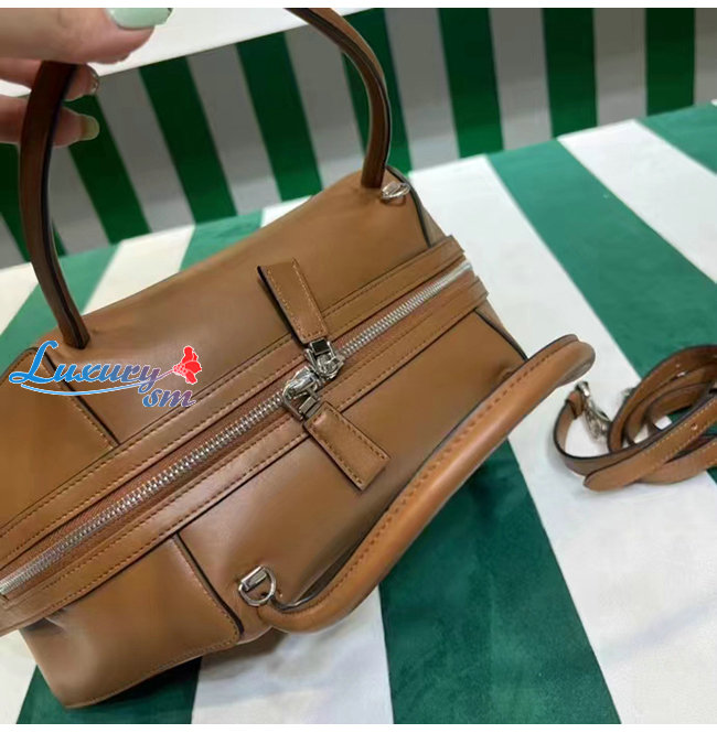 라인에 대한 연구가 특징인 미디엄 가죽 핸드백