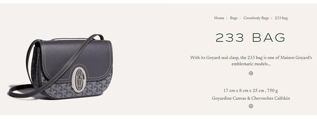 233 가방은 고야드의 상징적인 모델 중 하나이다.