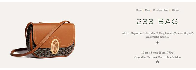 233 가방은 고야드의 상징적인 모델 중 하나이다.