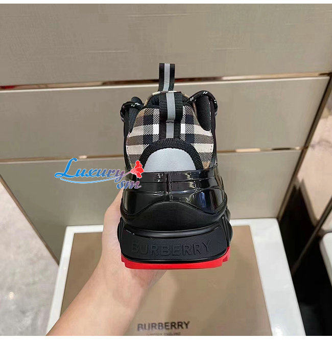 슈즈 디자인과 버버리 아이코닉 체크가 연
