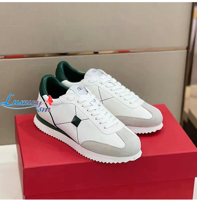 VALENTINO-2Y2S0G51 발렌티노 화이트/그린 STUD AROUND 로우탑 스니커즈 남성용