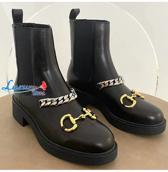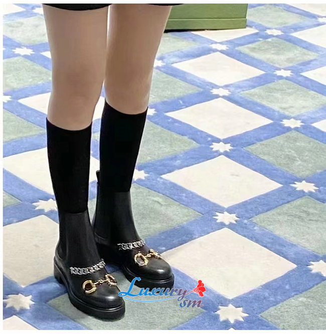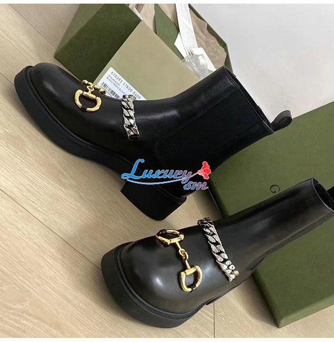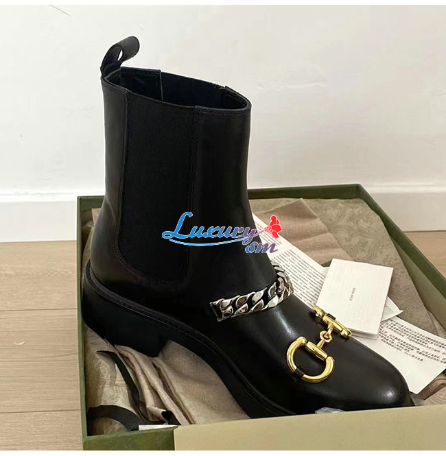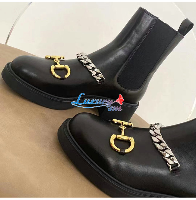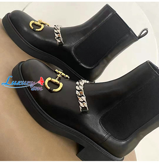 GUCCI-670393 1000 구찌 블랙 가죽 체인 첼시 부츠