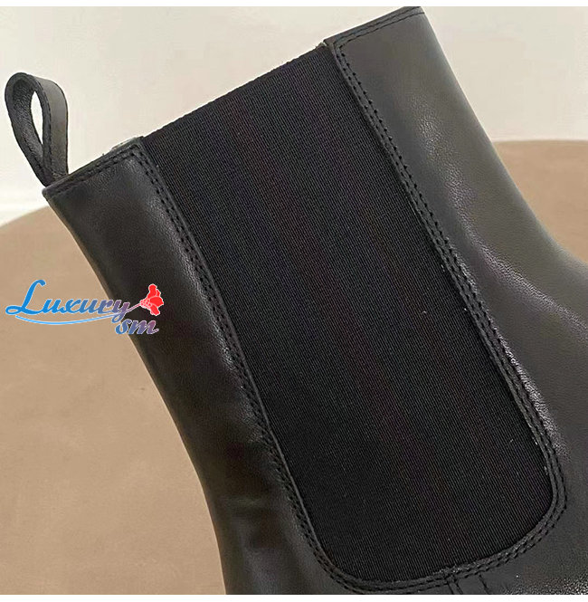 돋보이는 블랙 레더 소재의 첼시 부츠.