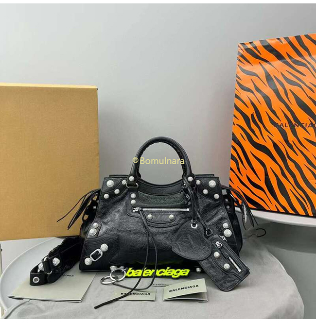 [스페셜오더]BALENCIAGA-7004512 발렌시아가 블랙 라인스톤 NEO CAGOLE CITY 핸드백