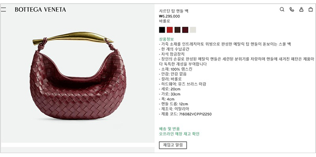 [스페셜오더]BOTTEGA VENETA-716082 보테가 베네타 바롤로 사르딘 탑 핸들 백