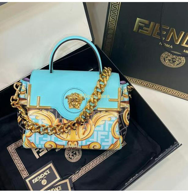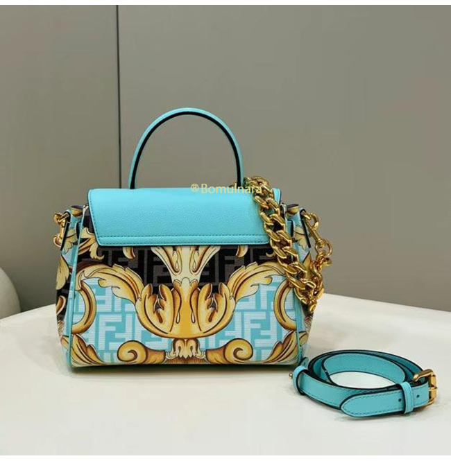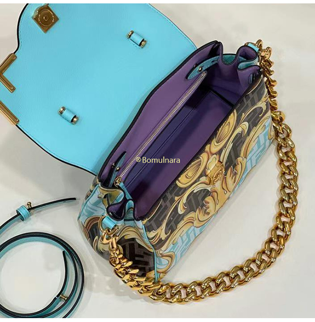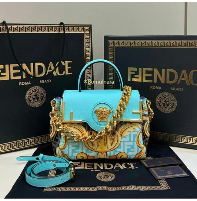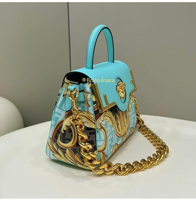 [스페셜오더]FENDI X VERSACE DBFI039 펜디 X 베르사체 펜다체 메두사 골드 바로크 블루 미디엄 핸드백