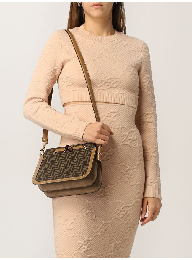 FENDI-8BT349 펜디 브라운 FF 패브릭 터치 숄더 백