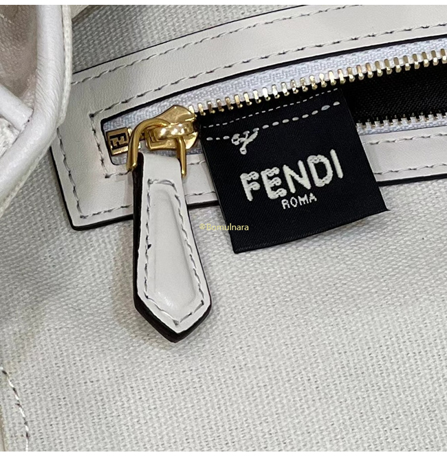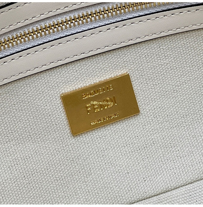 [스페셜오더]FENDI-8BR600 펜디 화이트 FF 캔버스 레이저컷 레터링 스트랩 바게트 백 27CM