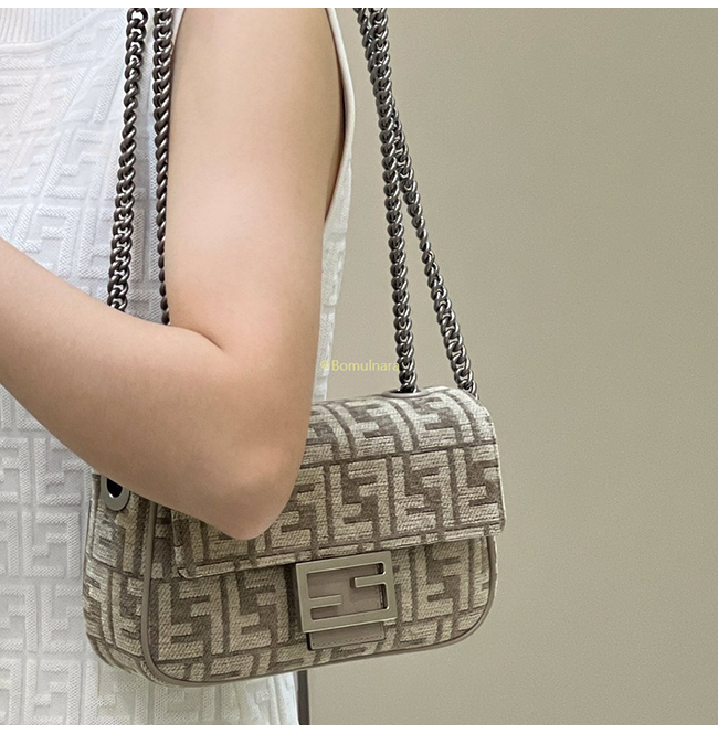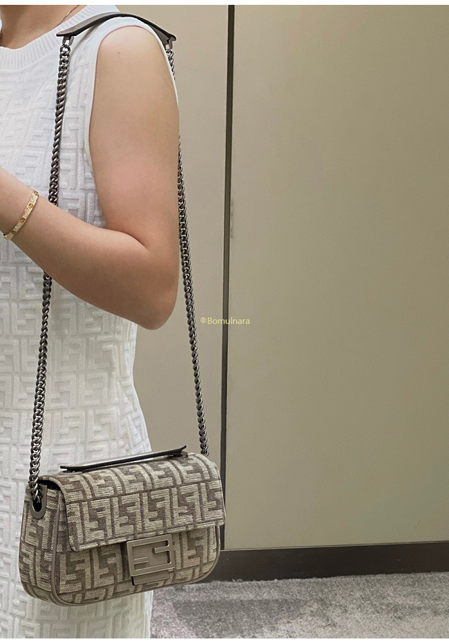 [스페셜오더]FENDI-8BR793 펜디 다크 그레이 FF 태피스트리 미디엄 체인 바게트 백 24CM