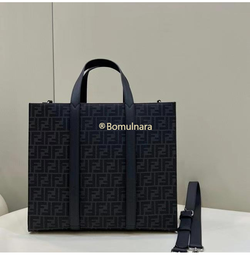 FENDI-펜디 블랙 FF 자카드 패브릭 쇼퍼 백