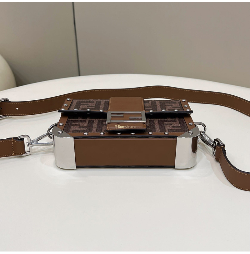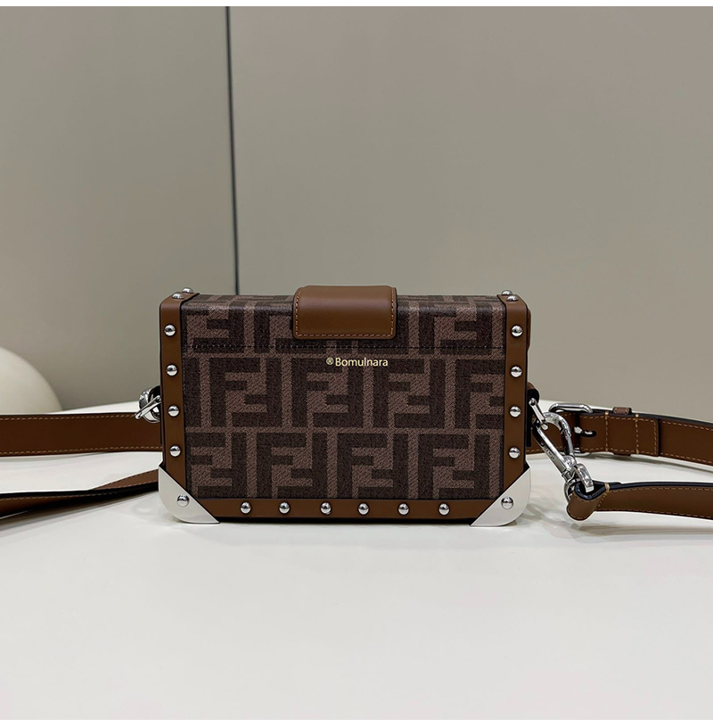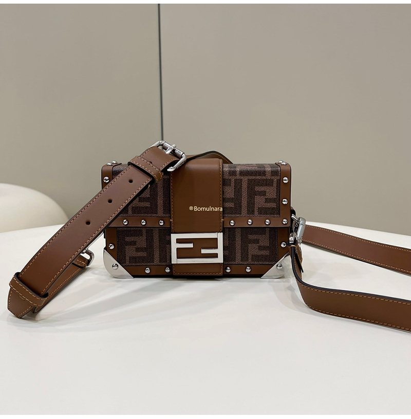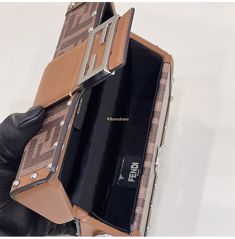 FENDI-펜디 브라운 FF 패브릭 미니 바게트 트렁크