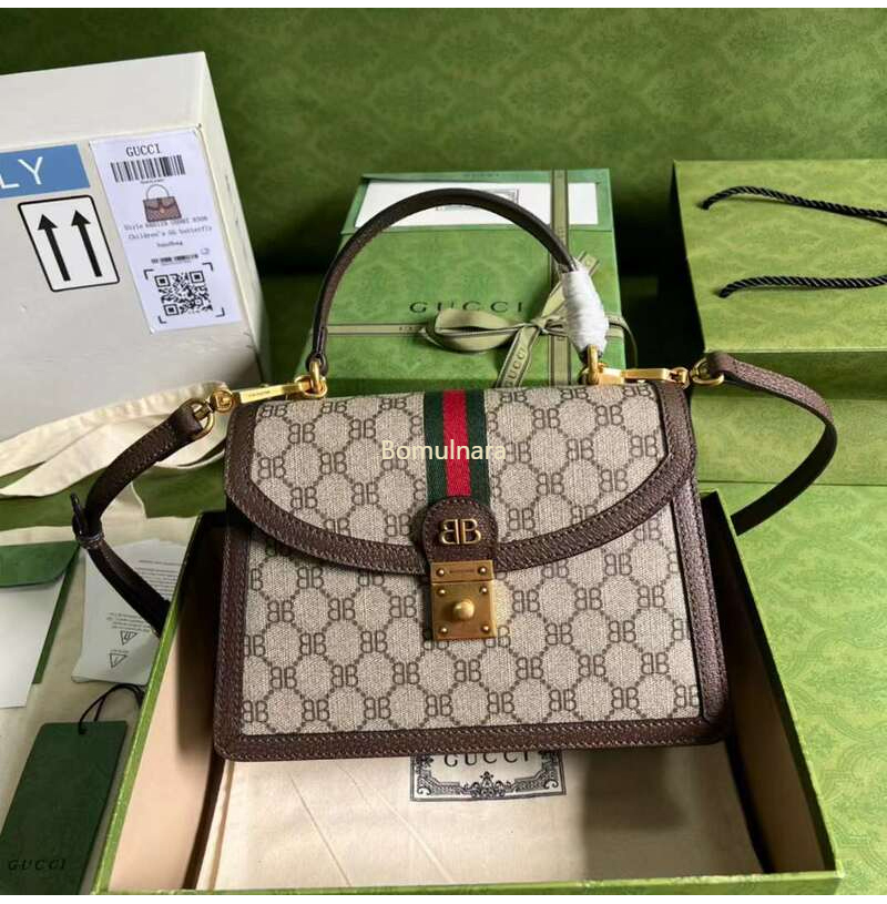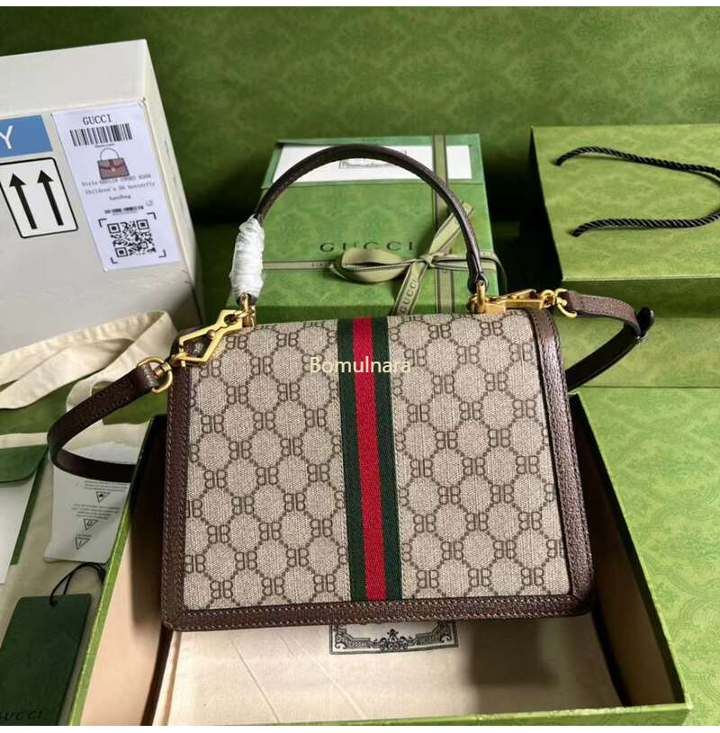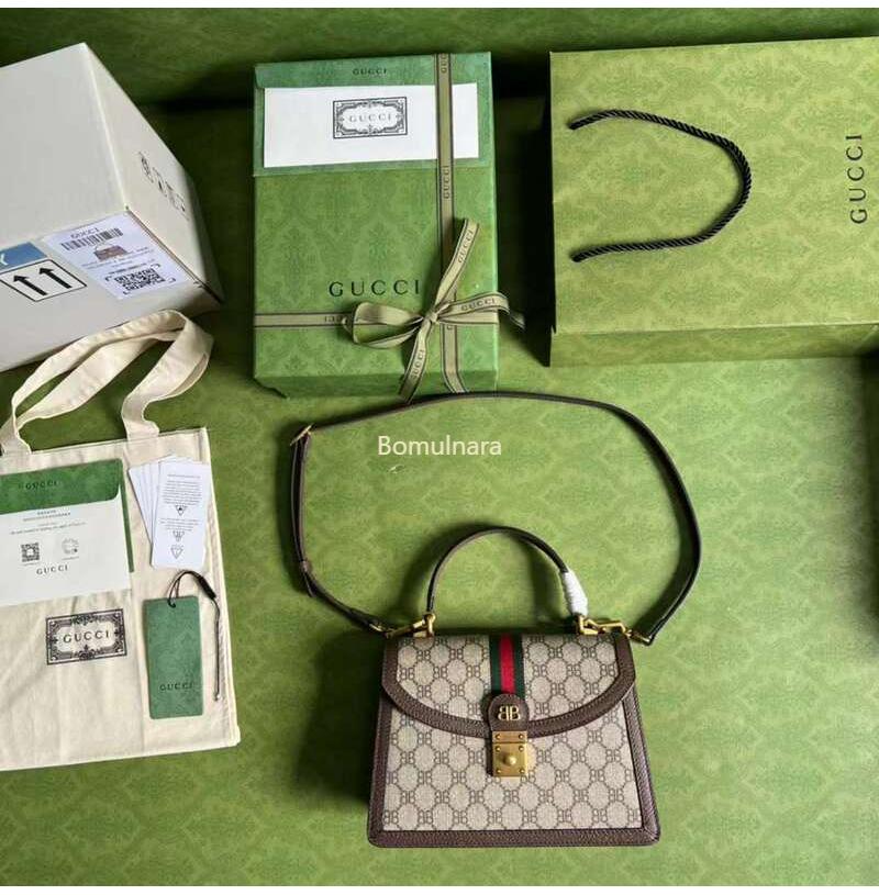 GUCCI-680119 구찌 × 발렌시아가 HACKER 베이지 BB 캔버스 스몰 탑 핸들 백