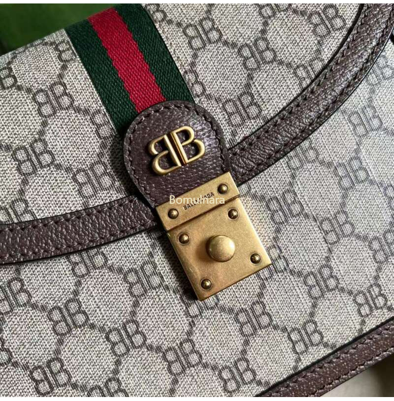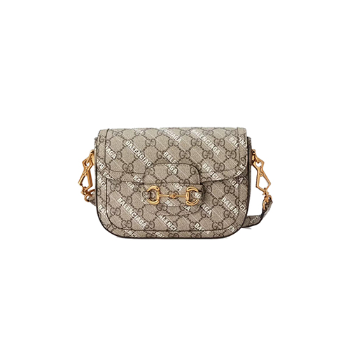 GUCCI-680132 구찌 × 발렌시아가 HACKER 베이지 BB 캔버스 재키 1961 미니 호보백