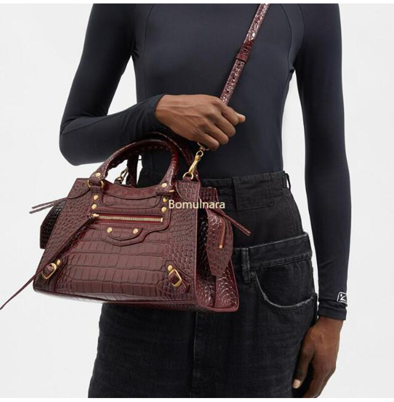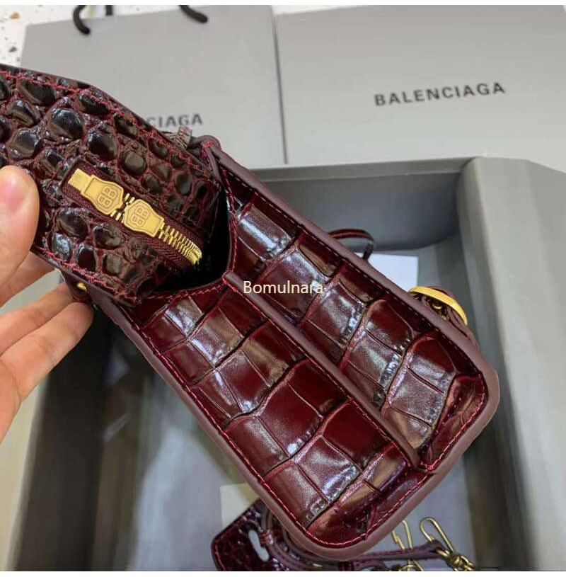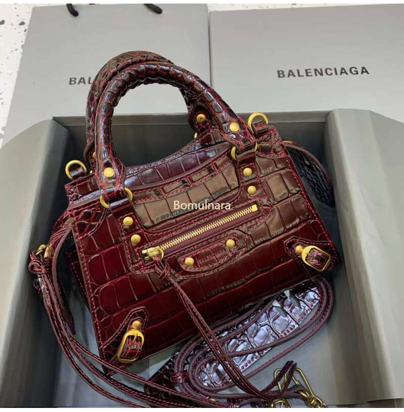 발렌시아가 버건디 크로커다일 엠보싱 네오 클래식