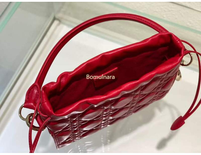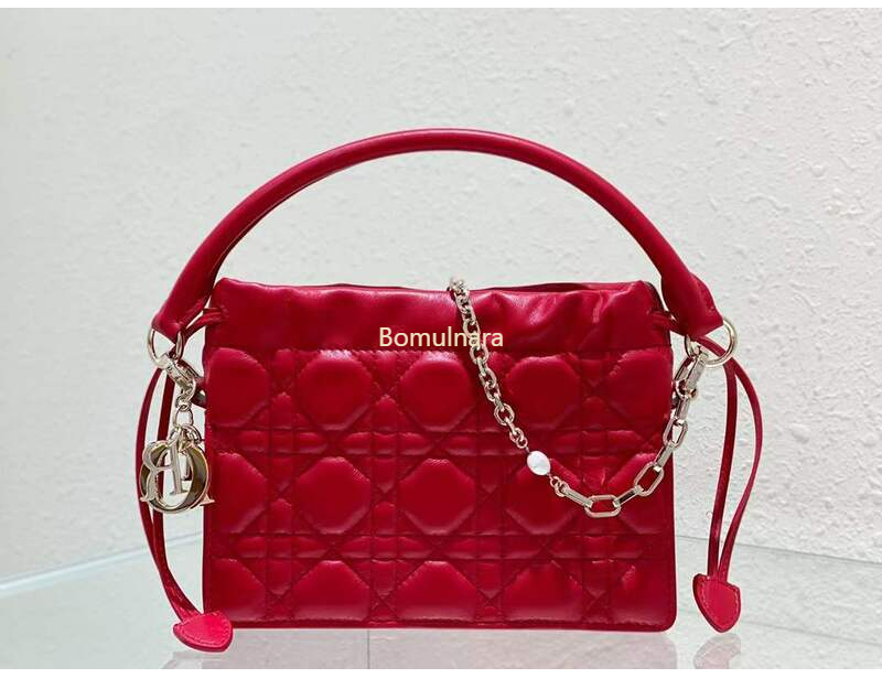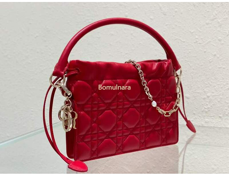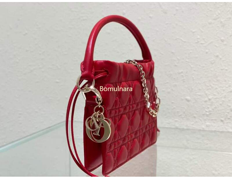 디올 레드 LADY DIOR 미니 드로우스트링 탑 핸들백