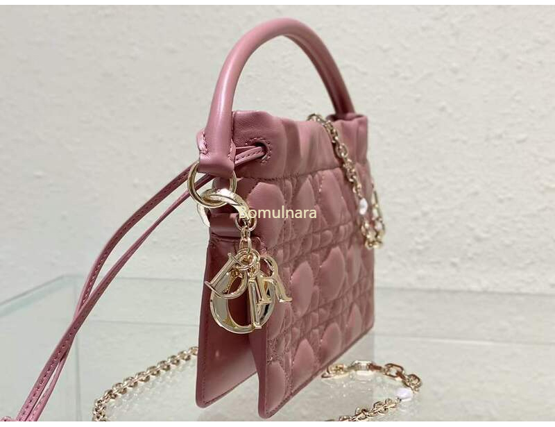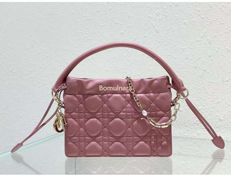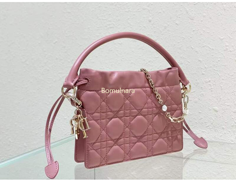 디올 핑크 LADY DIOR 드로우스트링 미니 탑 핸들백