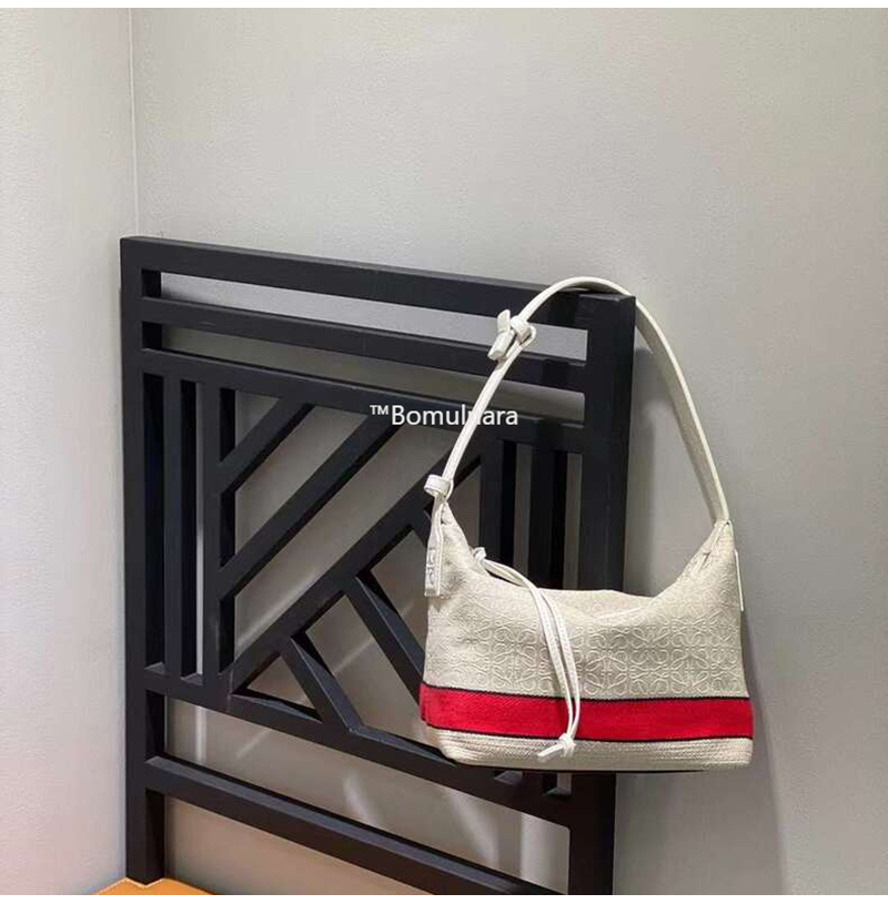 [스페셜오더]Loewe x Paula Ibiza 66076-로에베 x 파울라 이비자 크림&레드 CUBI 스트라이프 스몰 숄더백