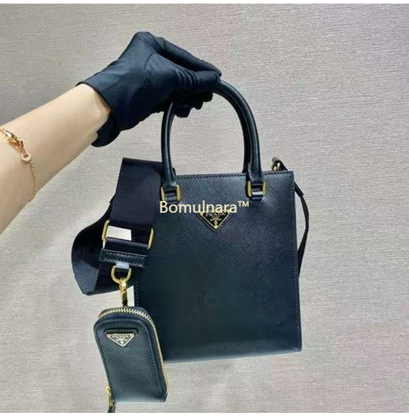 [스페셜오더]PRADA-1BA333 프라다 블랙 소형 트라이 앵글 로고 사피아노 핸드백