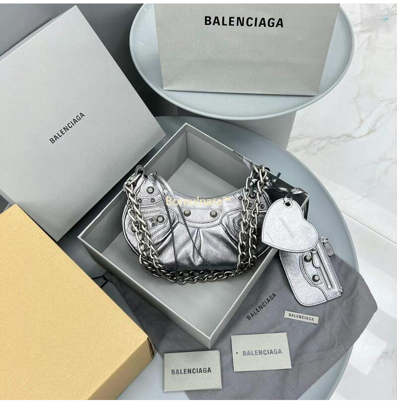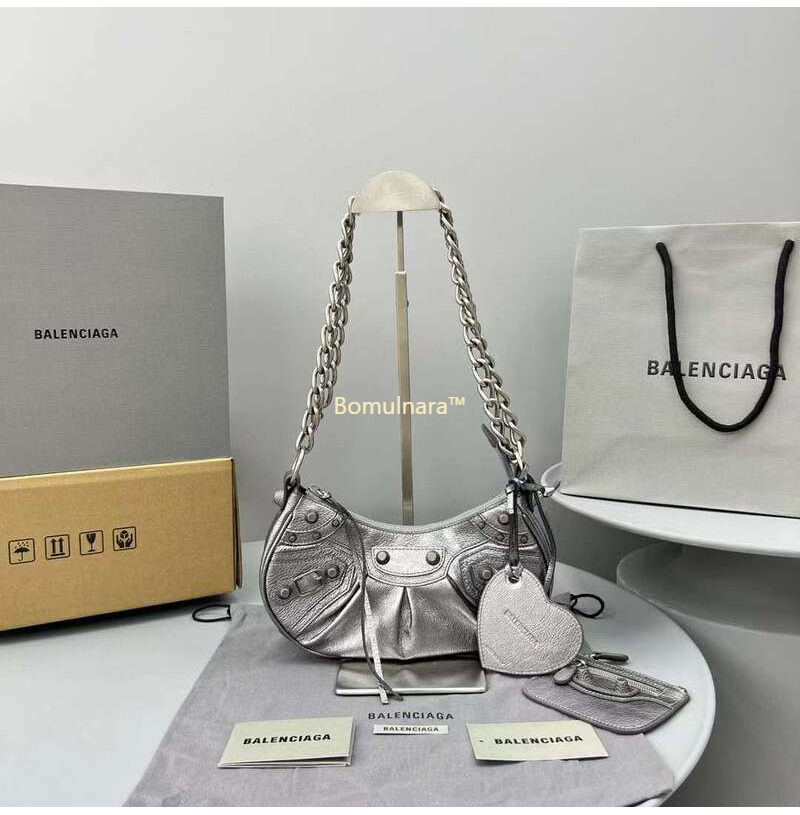 [스페셜오더]BALENCIAGA-712813 발렌시아가 실버 메탈릭 Le Cagole XS 체인 숄더백 24CM