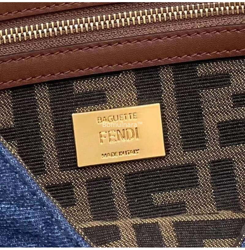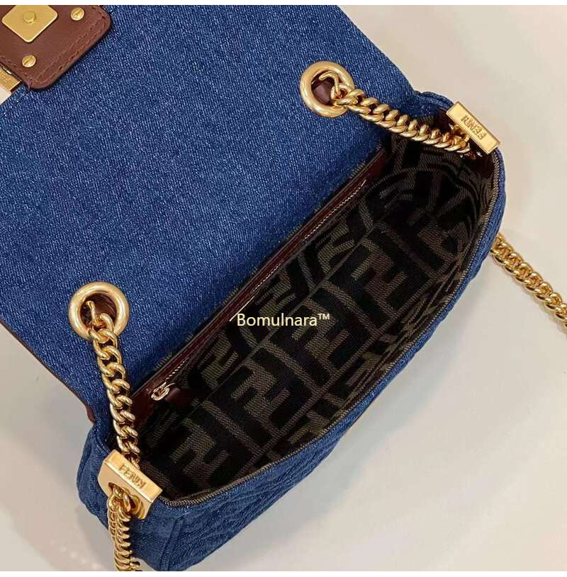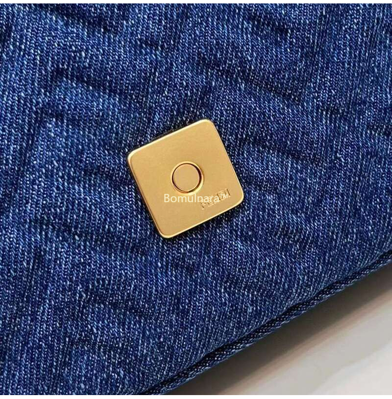 [스페셜오더]FENDI-8BR793 펜디 다크 블루 데님 미디 체인 바게트 백 24CM