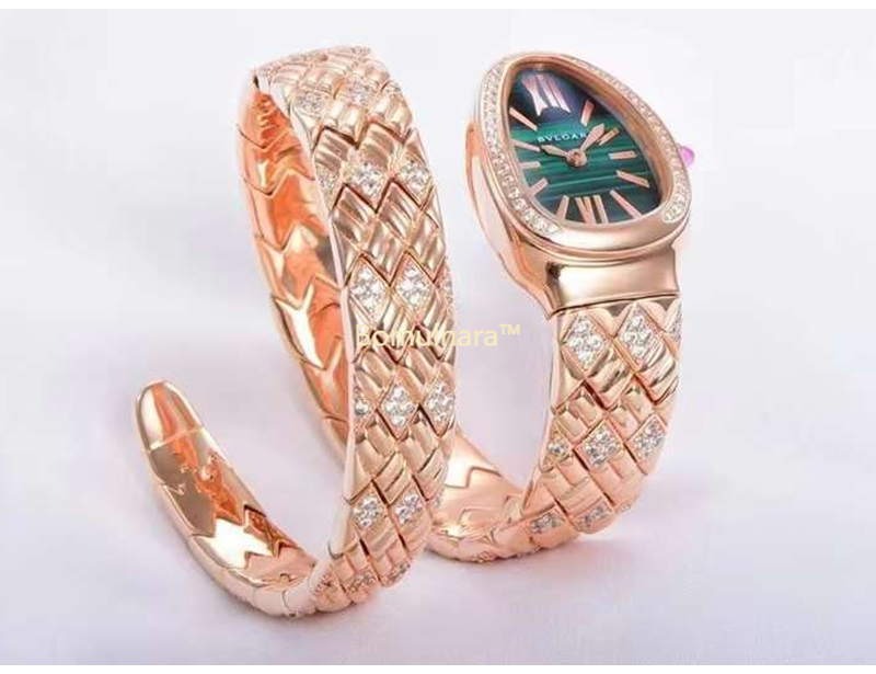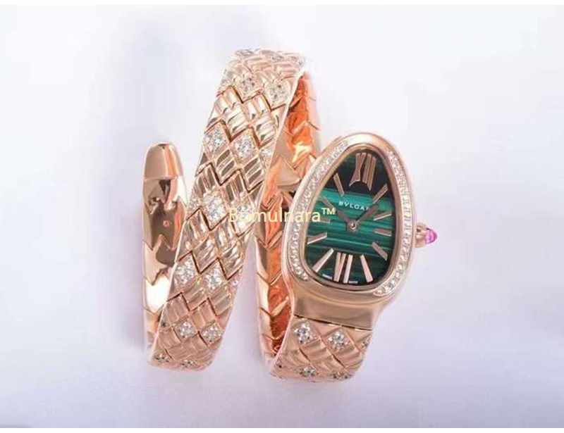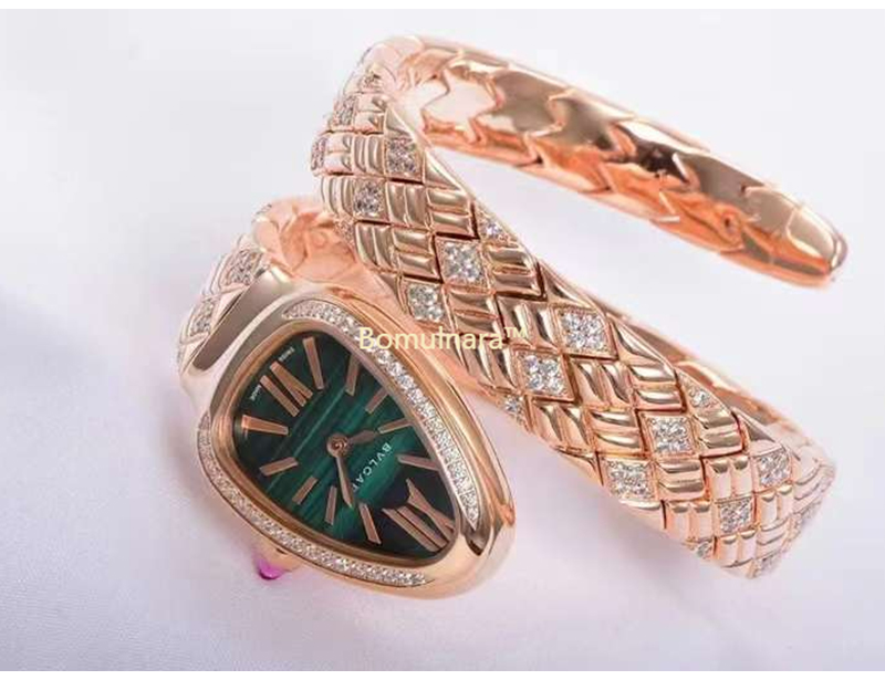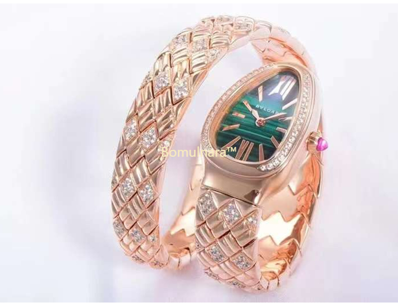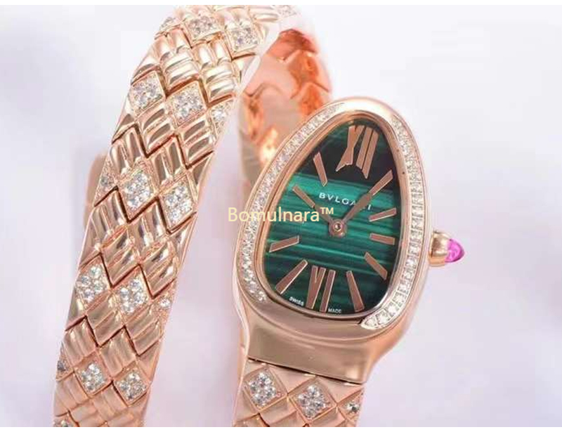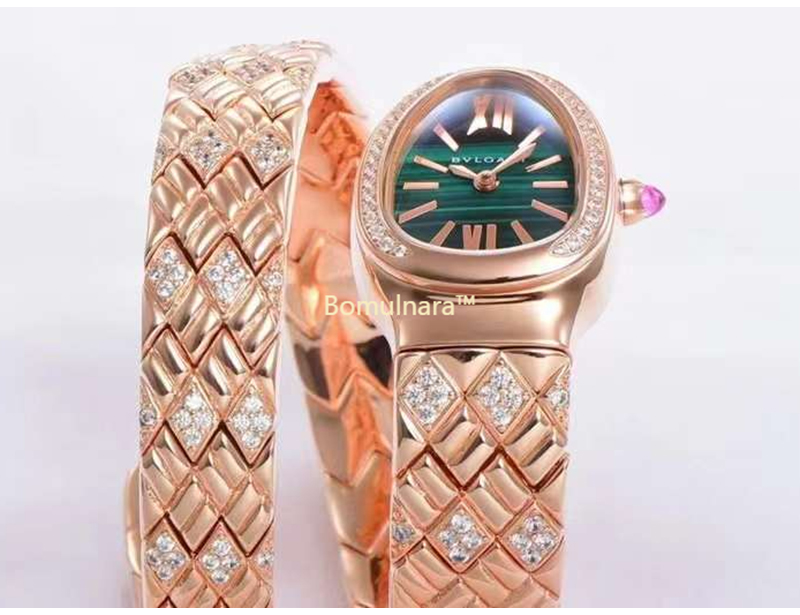 [스페셜오더]BVLGARI-103658 불가리 그린 로즈 골드 다이아몬드 세르펜티 스피가 여성 워치 35mm