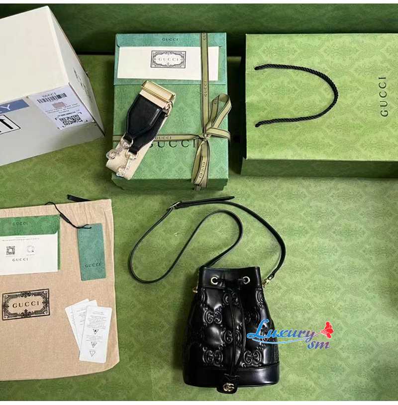 [스페셜오더]GUCCI-728231 1046 구찌 블랙 GG 마틀라세 레더 버킷백