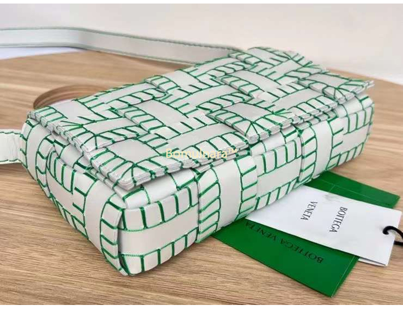 [스페셜오더]BOTTEGA VENETA-691400 보테가 베네타 화이트/패럿 그린 카세트 크로스 바디 백 23CM