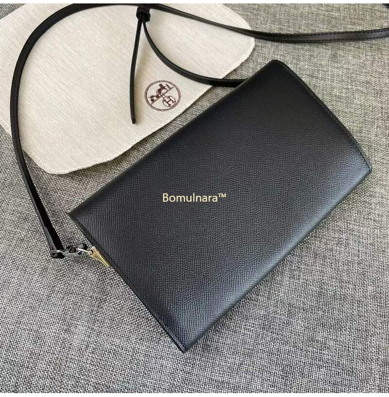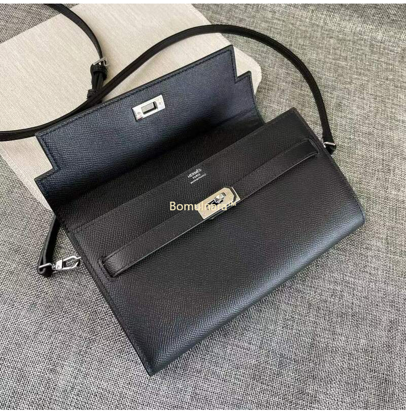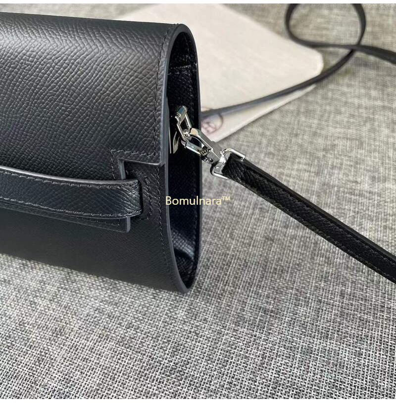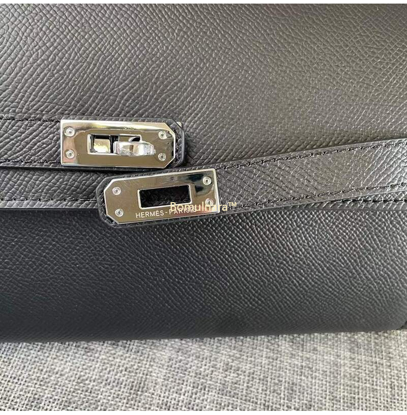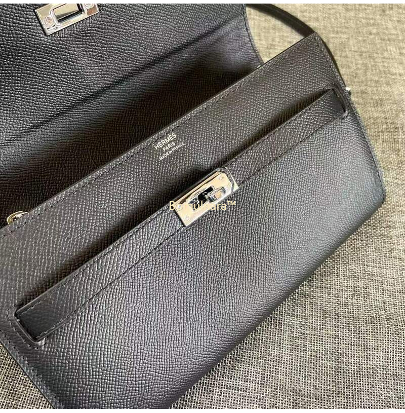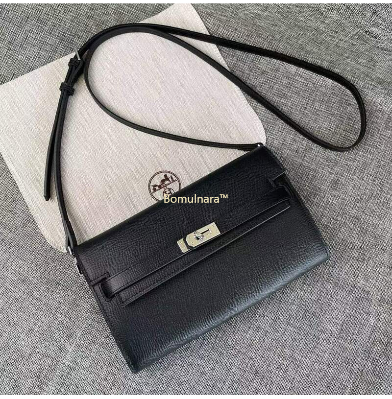 HERMES-에르메스 블랙 엡송 가죽 켈리 포쉐트 스트랩