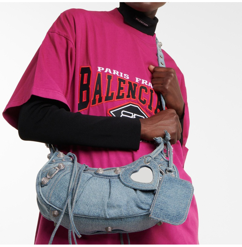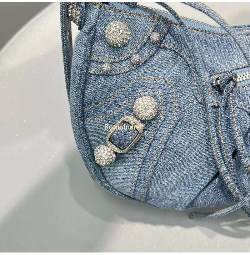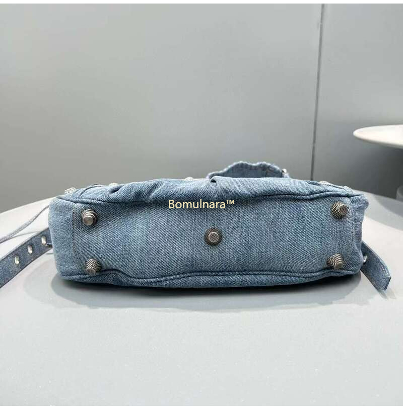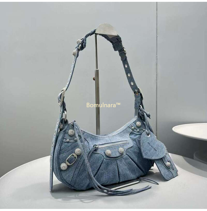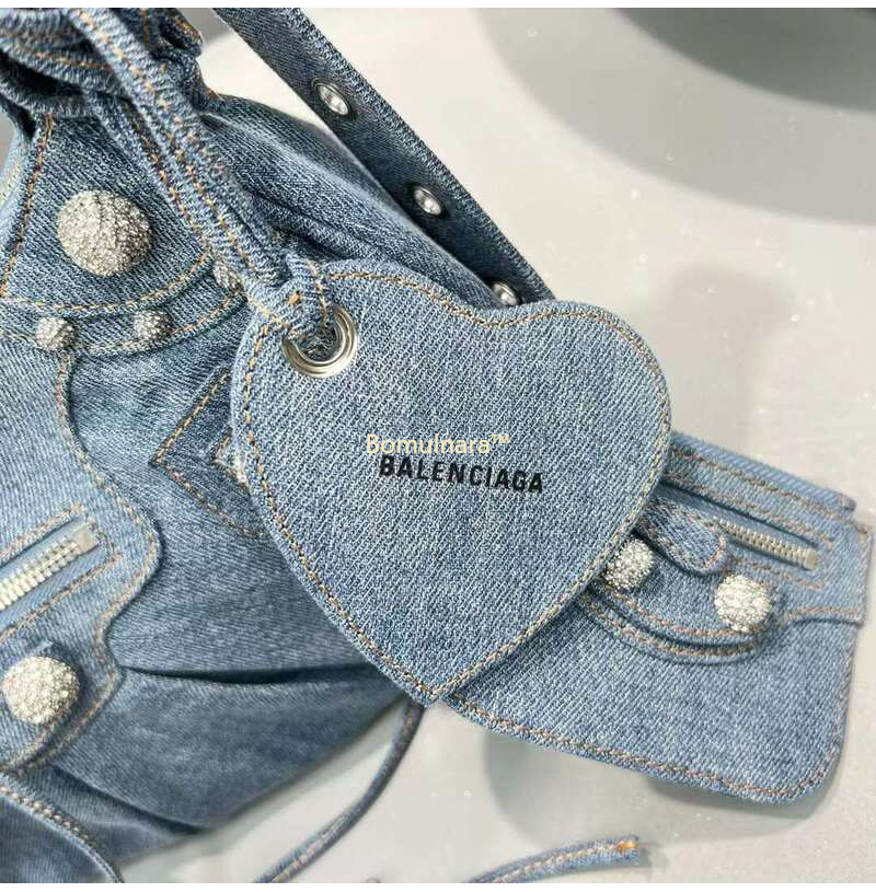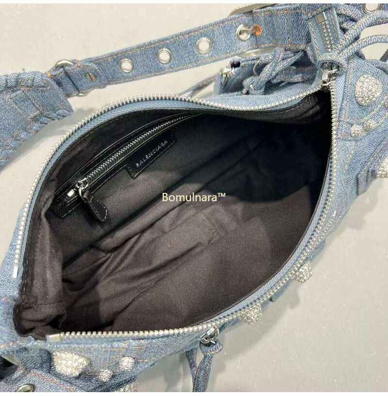 [스페셜오더]BALENCIAGA-671307 발렌시아가 블루 데님 라인스톤 LE CAGOLE 스몰 숄더백