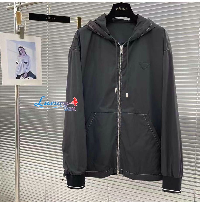 PRADA-02125 프라다 블랙 나일론 바람막이 후드 재킷 남성용