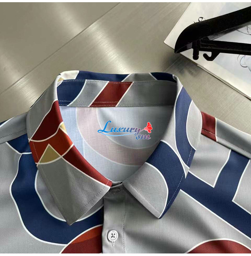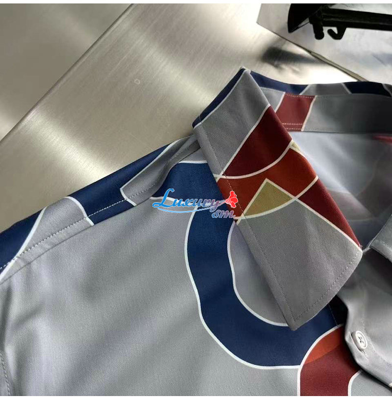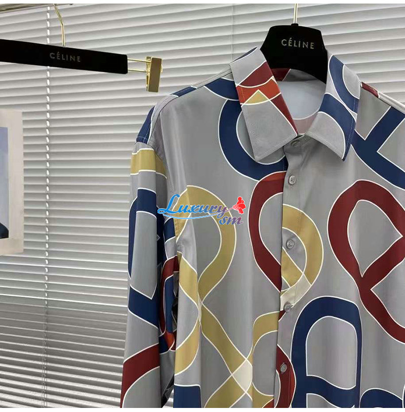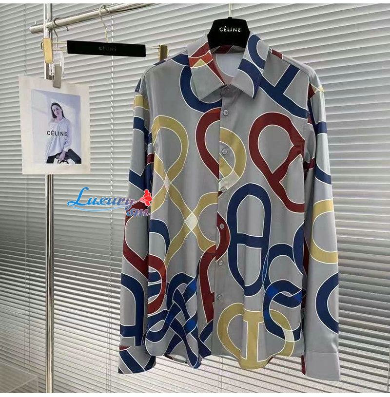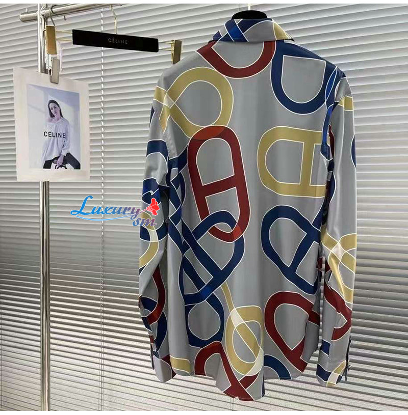 [스페셜오더]HERMES-02128 에르메스 그레이 프린트 장식 셔츠 남성용