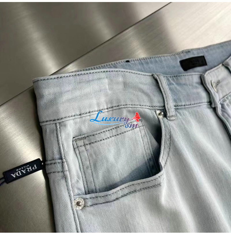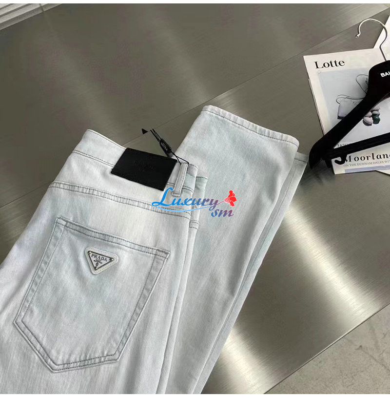 PRADA-021212 프라다 라이트 블루 트라이앵글 로고 청바지 남성용
