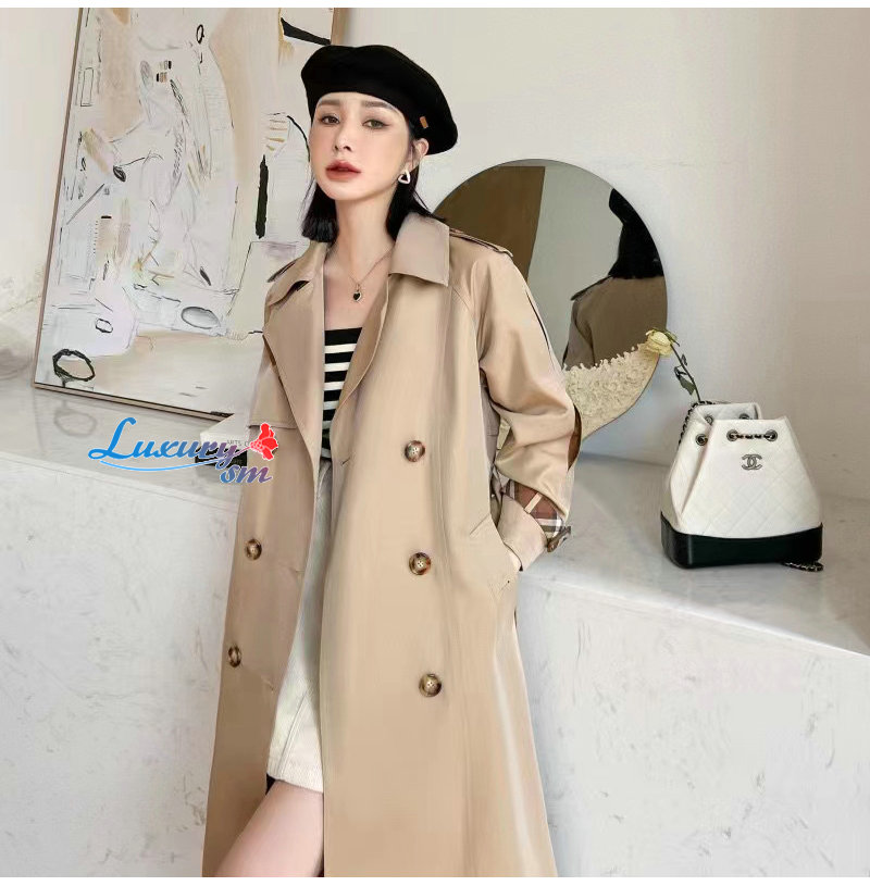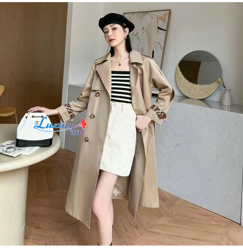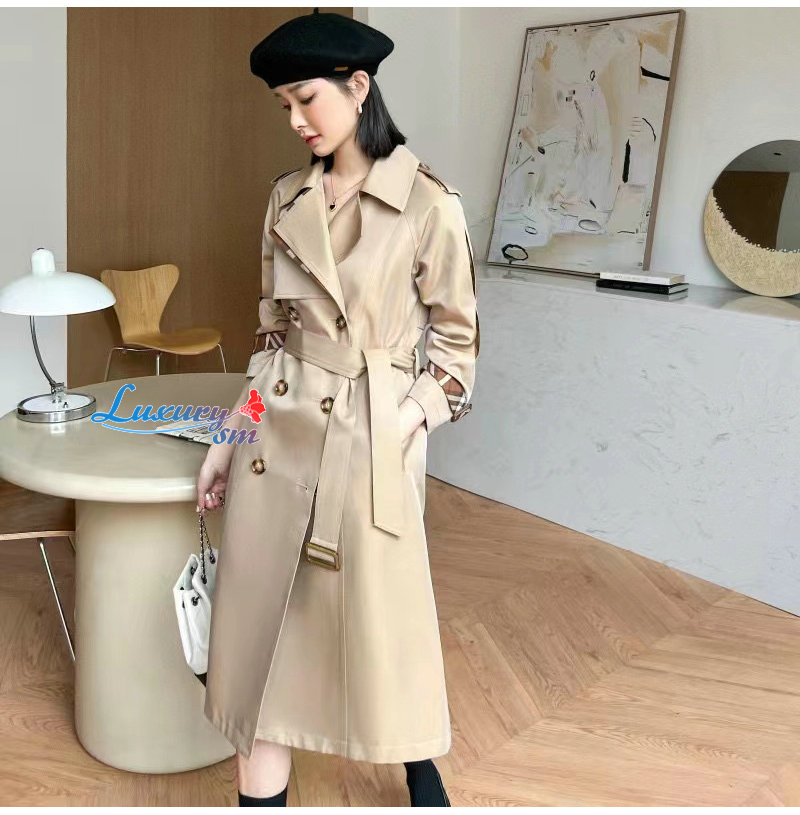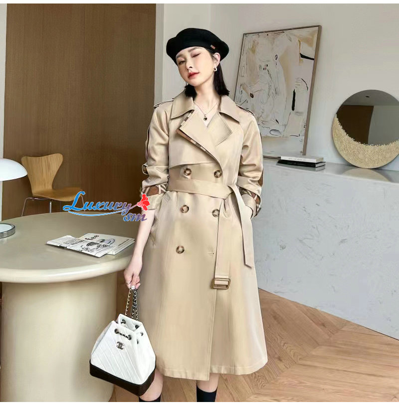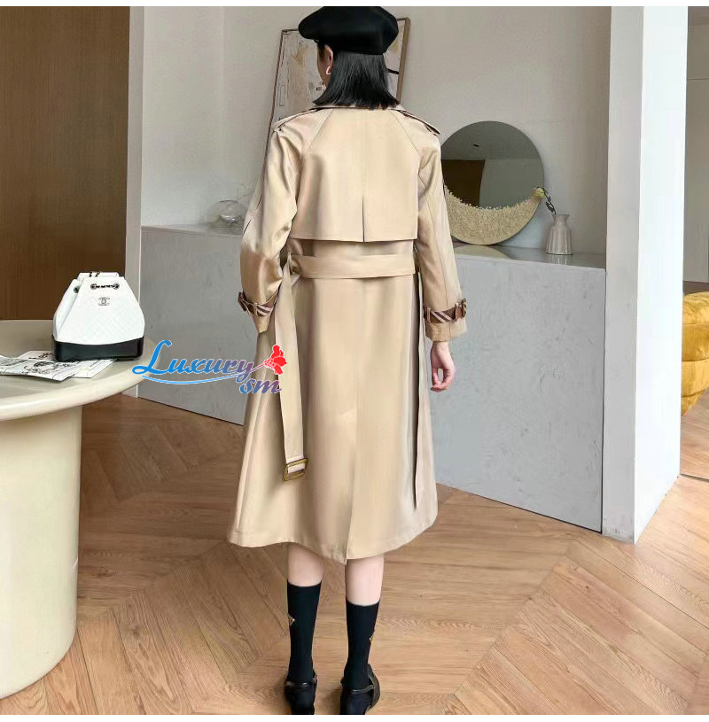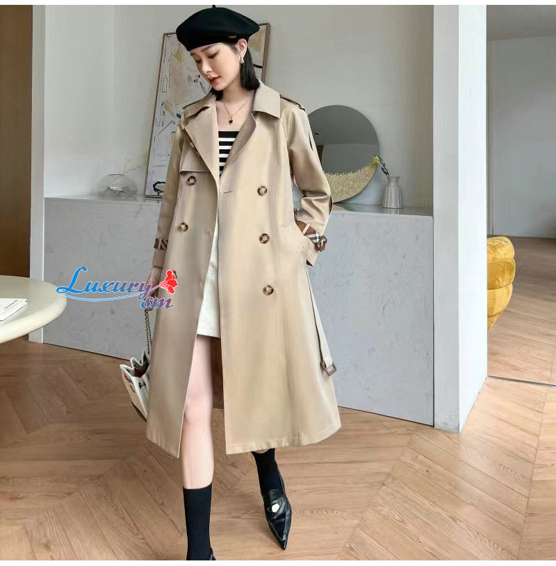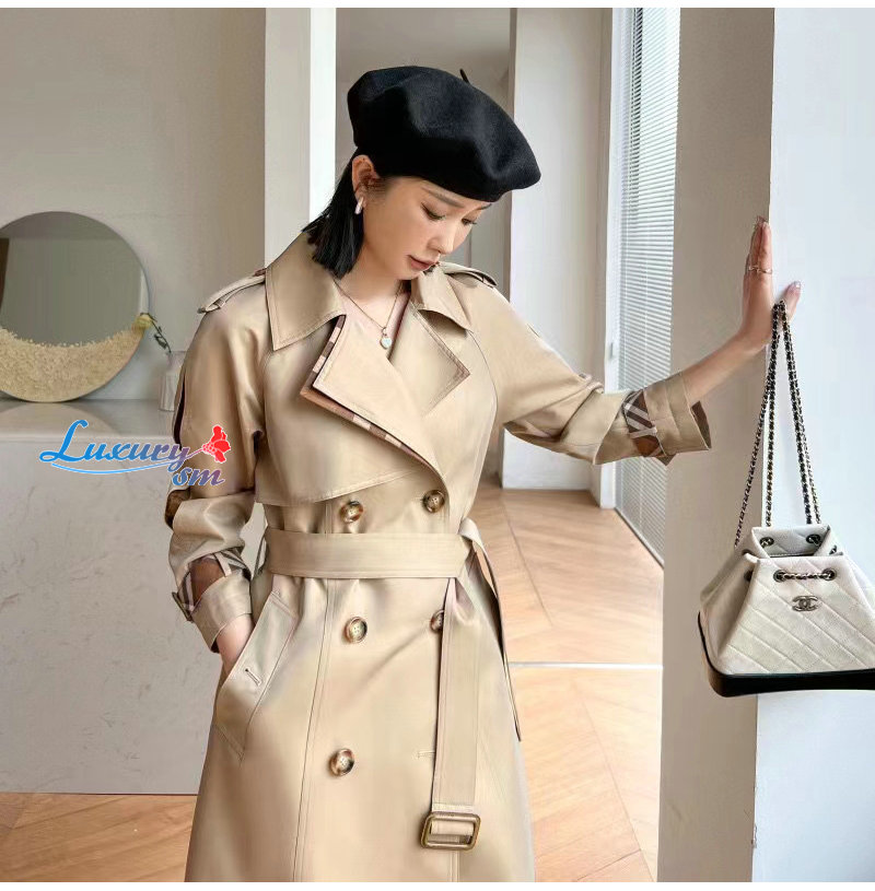 BURBERRY-02163 버버리 블랙 체크 트리밍 트렌치코트 여성용 가격 : 360,000원
