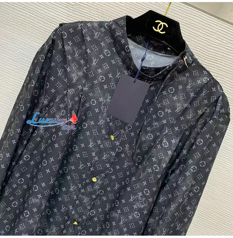 LOUIS VUITTON-1AAZ35 루이비통 블랙 플리츠 숄더 모노그램 클라우드 셔츠 여성용