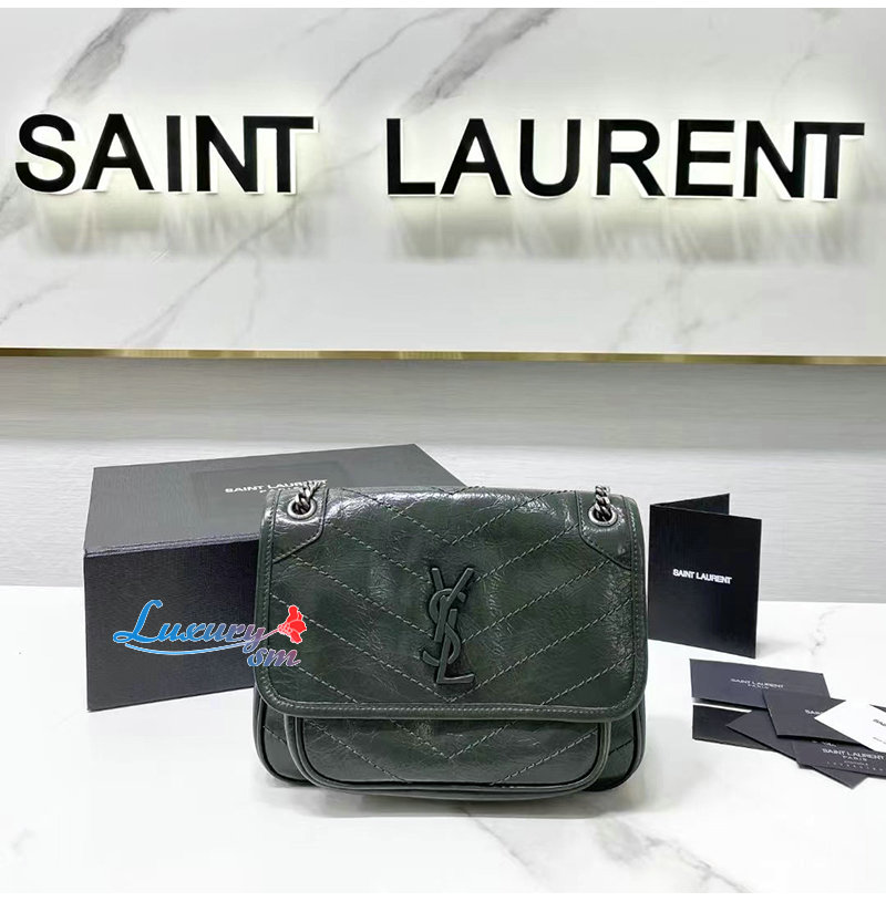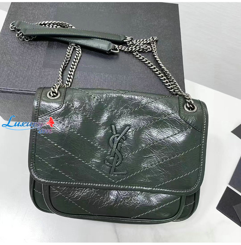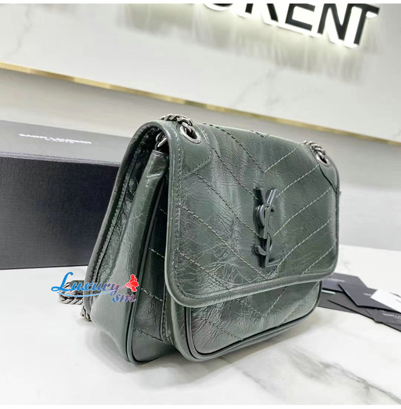 [스페셜오더]SAINT LAURENT-633160 생 로랑 다크 그린 크링클드 빈티지 가죽 니키 NIKI 베이비백