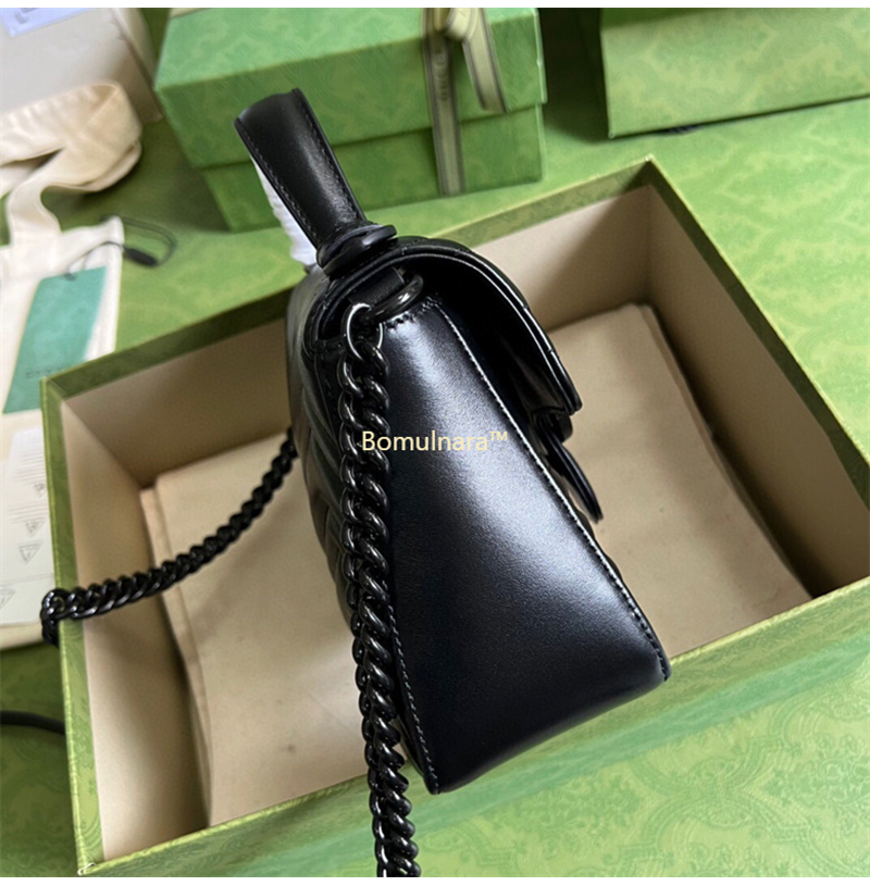 [스페셜오더]GUCCI-702563 1000 구찌 블랙 GG 마몽 마틀라세 쉐브론 미니 탑 핸들백