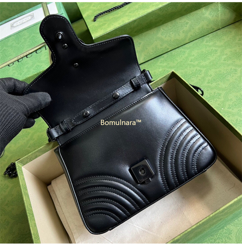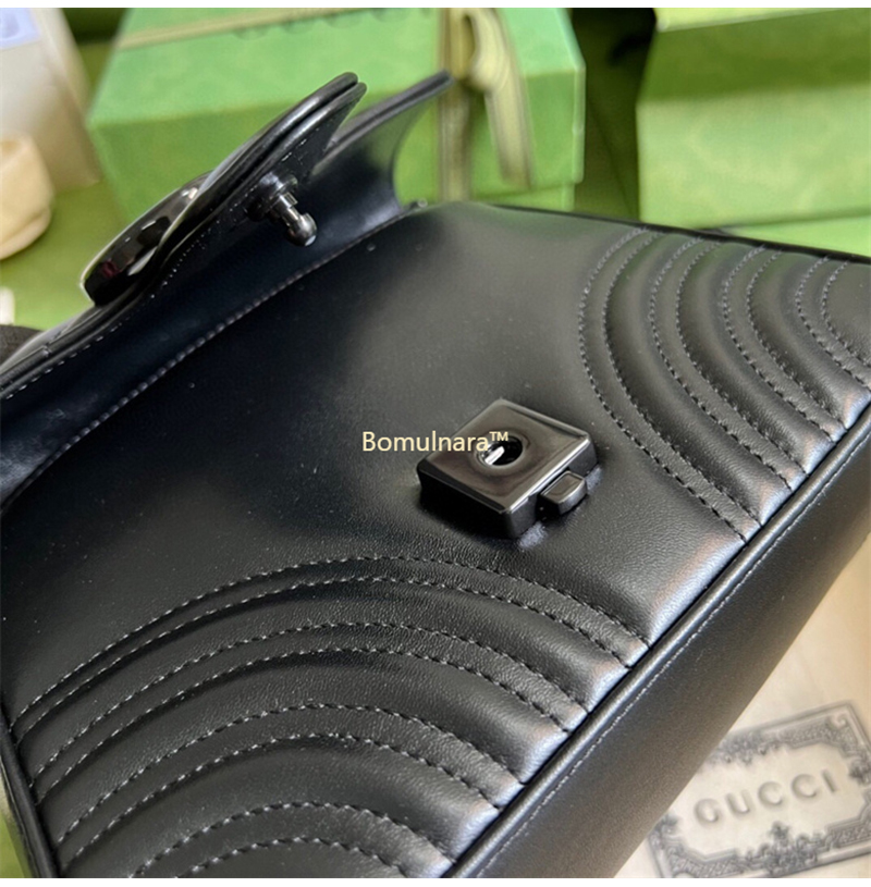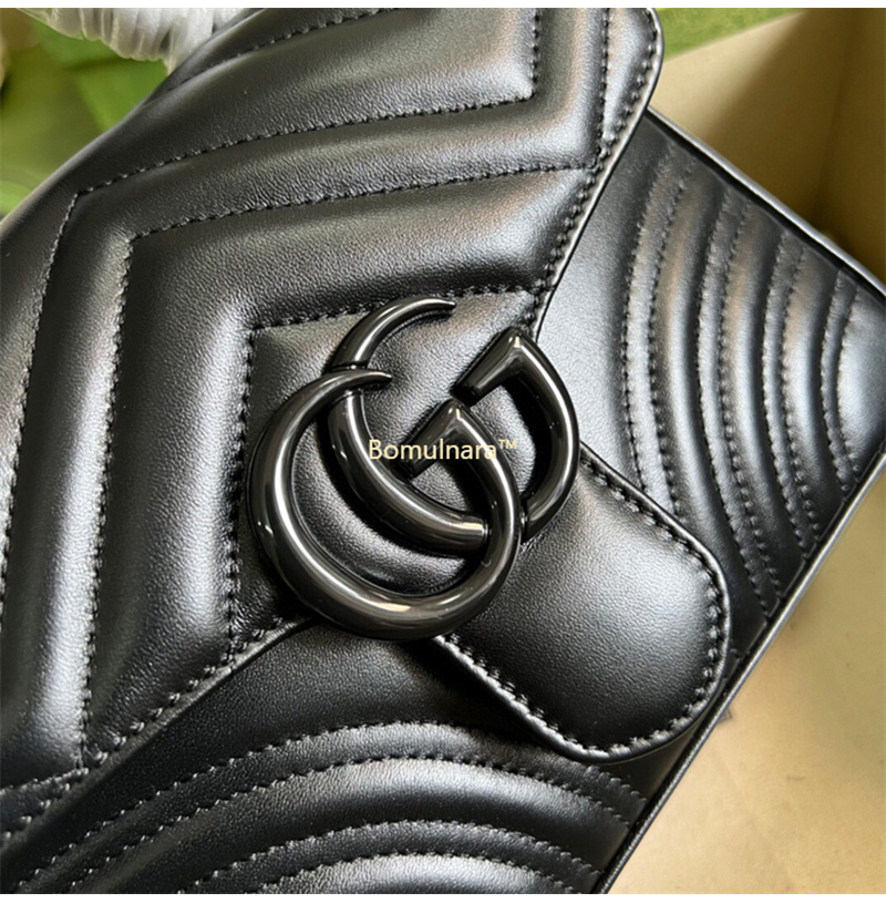 [스페셜오더]GUCCI-583571 8277 구찌 GG 마몽 블랙 사선형 마틀라세 가죽 미니 탑 핸들백 가격 : 340,000원