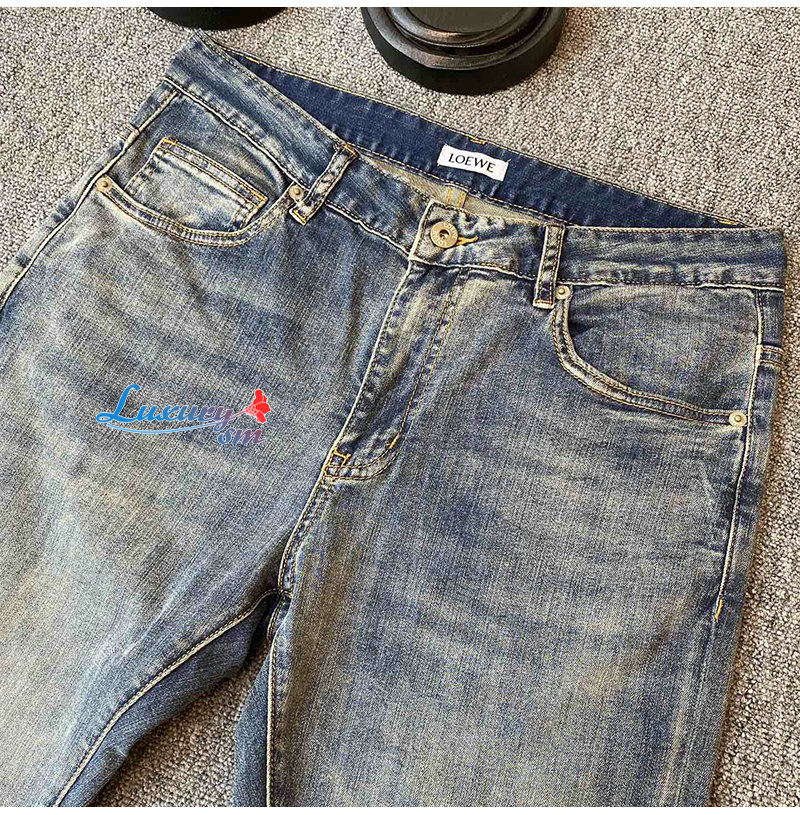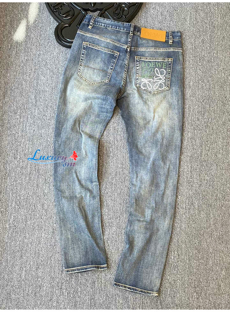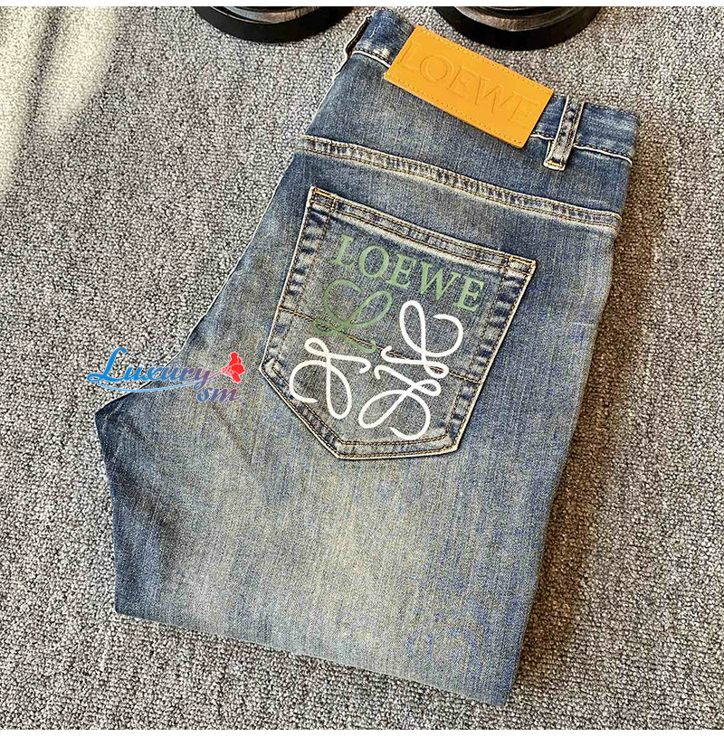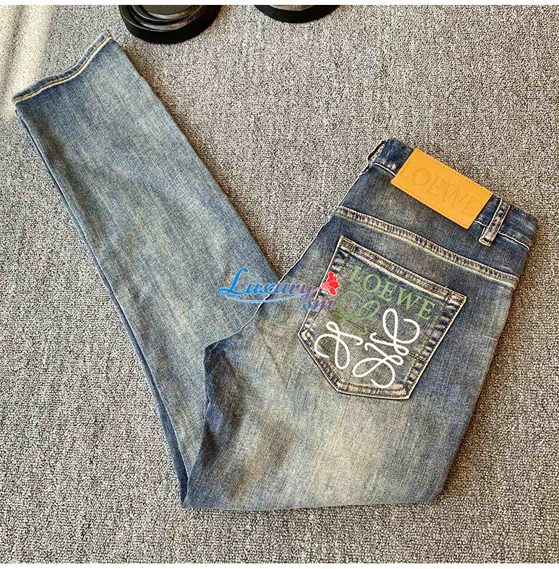 LOEWE-02267 로에베 블루 로고 프린트 장식 청바지 남성용