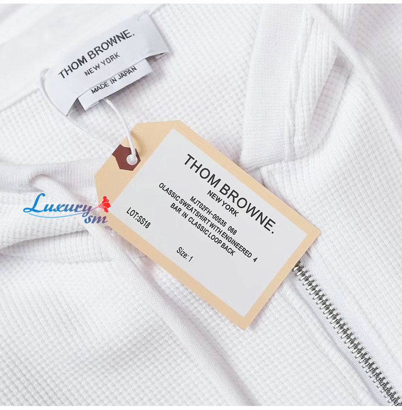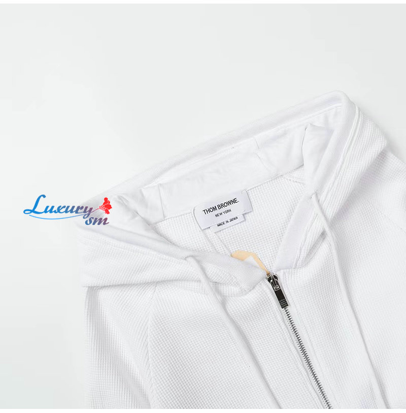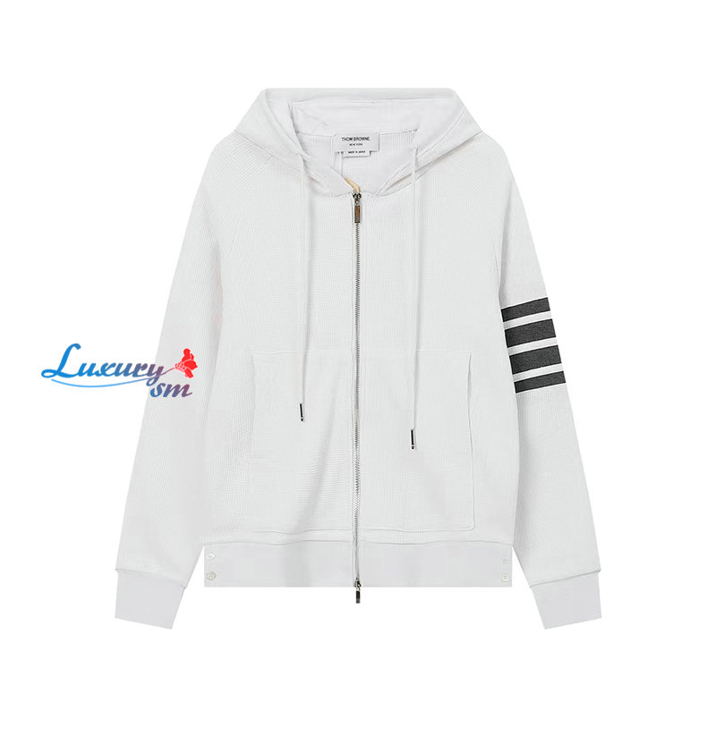 THOM BROWNE-03015 톰 브라운 화이트 스트라이프 장식 후드 재킷 남여공용