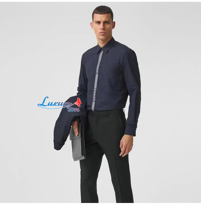BURBERRY-03074 버버리 네이비 스트라이프 장식 셔츠 남성용