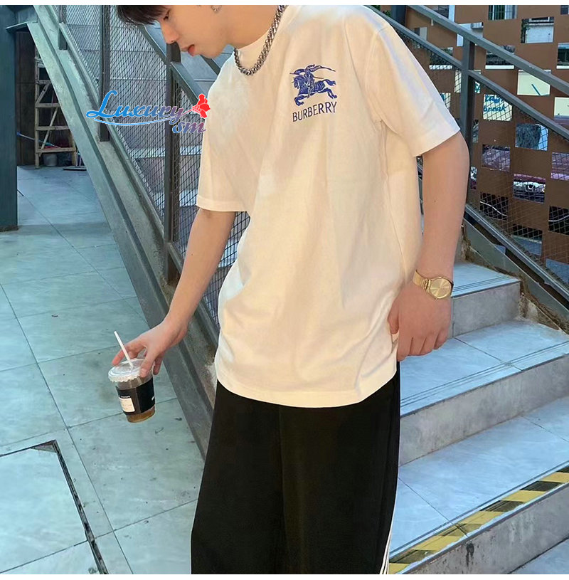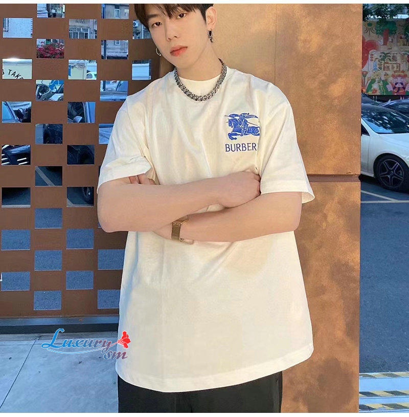 BURBERRY-03085 버버리 화이트 프린트 장식 티셔츠 남성용